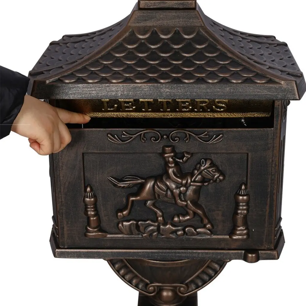 Cast Aluminum Mail Boxes For House With Post Rustproof Mailbox - Brown
