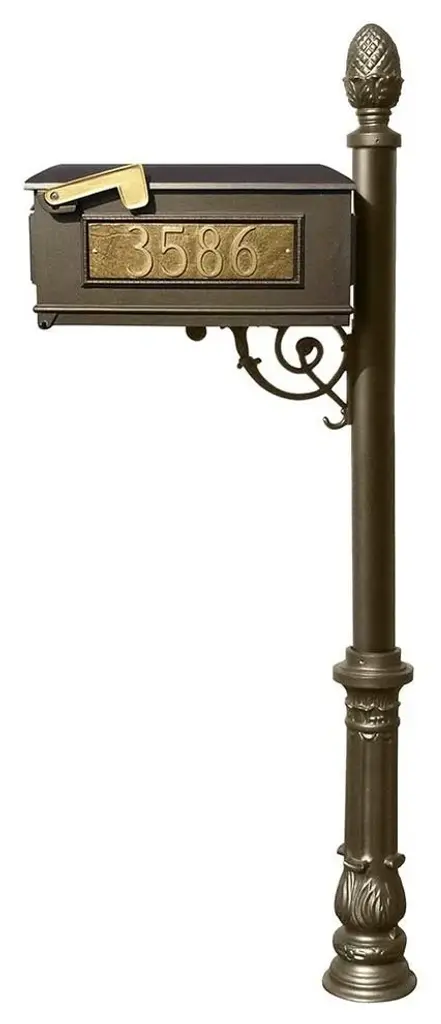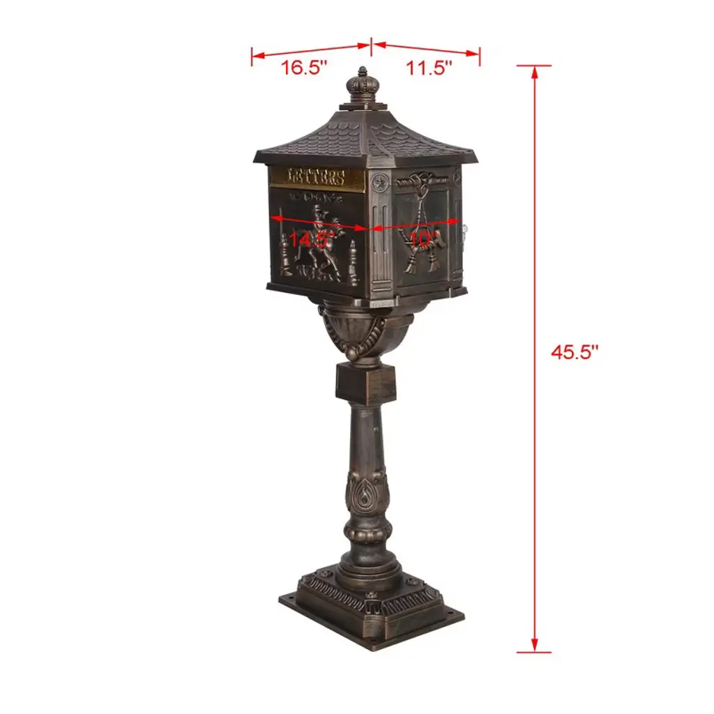 Cast Aluminum Mailbox With Post, Locking Security Post Mount Mail Box, Large Security Postal Mailbox For Outside With Keys, Postal Mailbox Bronze