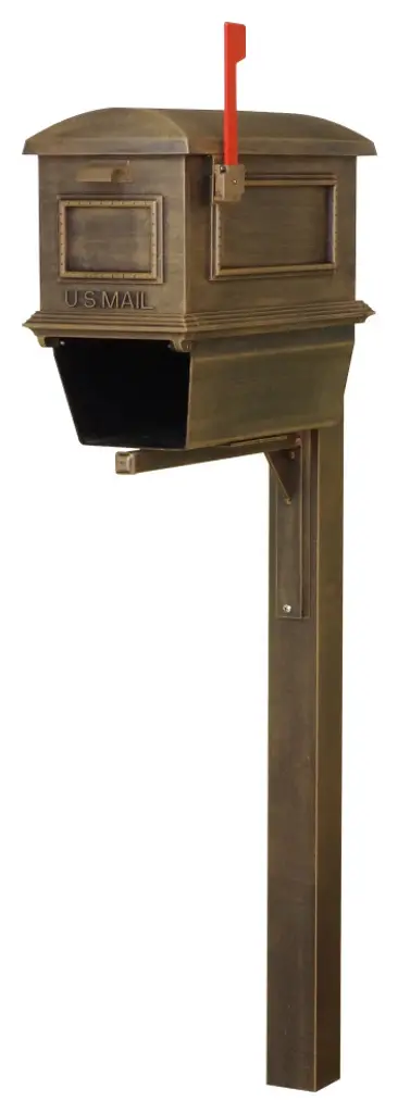 The traditional shape of our Classic curbside mailbox is the only thing this mailbox has in common with a typical curbside mailbox. The solid cast aluminum construction, with thicker walls than our competitors, provides added strength, and the powder coated finish will maintain a lifetime of beauty. Newspaper tube included.This fluted Direct Burial Mailbox Post is made of durable cast and extruded aluminum with a powder coated finish for a lifetime of beauty. 3" outer diameter x 77 1/2" H Fluted Post. Includes decorative mailbox mounting bracket and pole topper.This mailbox combination also includes an easy to install locking insert, to help protect from identity theft. Manufactured from rust free powder coated aluminum, the Lock Box firmly attaches to the bottom of the mailbox and cannot be removed without the key. The Lock Box insert is easly installed with four screws (included). Consult your local postmaster regarding regulations governing the installation of locking inserts.