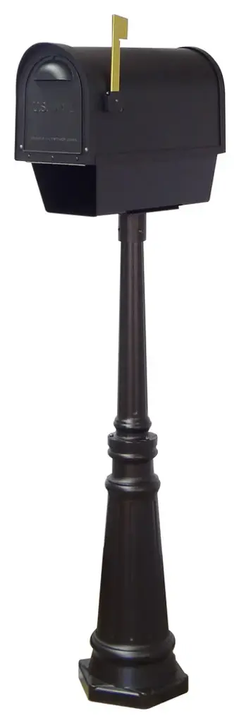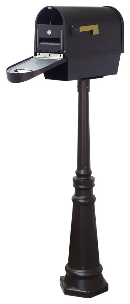 The traditional shape of our Classic curbside mailbox is the only thing this mailbox has in common with a typical curbside mailbox. The solid cast aluminum construction, with thicker walls than our competitors, provides added strength, and the powder coated finish will maintain a lifetime of beauty. Newspaper tube included.The Tacoma surface mount mailbox post is made of cast aluminum. Post dimensions are 42" H x 9" Dia. Base. Surface Mount installation is required.This mailbox combination also includes an easy to install locking insert, to help protect from identity theft. Manufactured from rust free powder coated aluminum, the Lock Box firmly attaches to the bottom of the mailbox and cannot be removed without the key. The Lock Box insert is easly installed with four screws (included). Consult your local postmaster regarding regulations governing the installation of locking inserts.