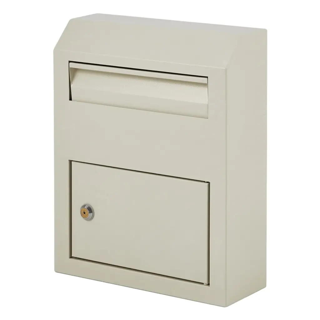 The incoming mail slot is protected from the elements by a self closing angled flap finished in a satin black paint. The front door opens downward to 80 degrees preventing contents from falling out.