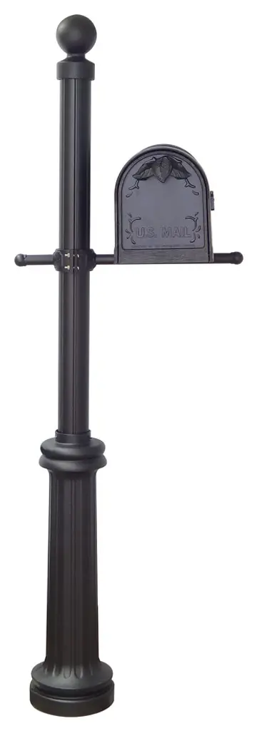 The traditional mailbox shape gets a decorative upgrade with our Floral curbside mailbox. Deeply embossed leaf designs on all sides gives the Floral curbside a charming apperance suitable for either a country of suburban home.This Fresno Direct Burial Mailbox Post is made of durable cast and extruded aluminum with a powder coated finish for a lifetime of beauty. 3" outer diameter x 76" H Fluted Post. Includes decorative mailbox mounting bracket and cannon ball post topper and wrap around base.