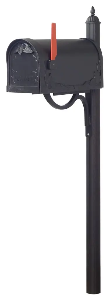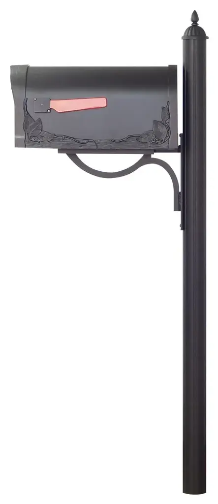 The traditional mailbox shape gets a decorative upgrade with our Floral curbside mailbox. Deeply embossed leaf designs on all sides gives the Floral curbside a charming apperance suitable for either a country of suburban home.This fluted Direct Burial Mailbox Post is made of durable cast and extruded aluminum with a powder coated finish for a lifetime of beauty. 3" outer diameter x 77 1/2" H Fluted Post. Includes decorative mailbox mounting bracket and pole topper.