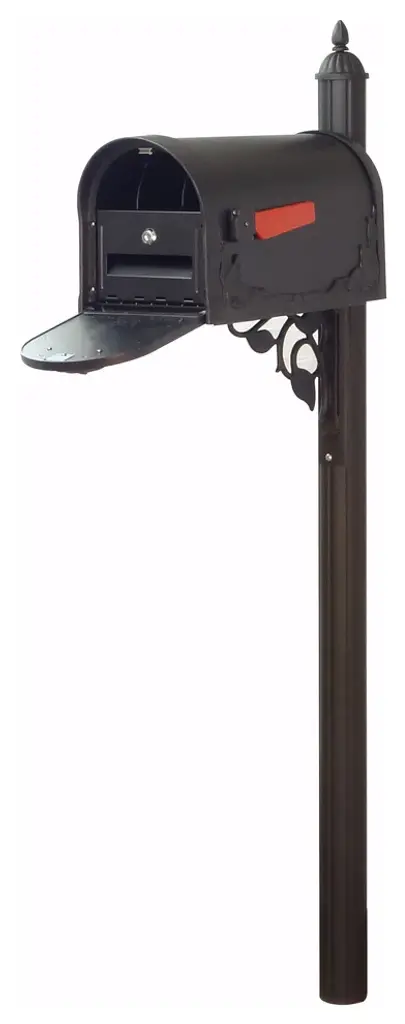 The traditional shape of our Classic curbside mailbox is the only thing this mailbox has in common with a typical curbside mailbox. The solid cast aluminum construction, with thicker walls than our competitors, provides added strength, and the powder coated finish will maintain a lifetime of beauty. This Albion Direct Burial Mailbox Post is made of durable cast and extruded aluminum with a powder coated finish for a lifetime of beauty. 3" outer diameter x 77" H Fluted Post. Includes decorative floral mailbox mounting bracket and post topper.This mailbox combination also includes an easy to install locking insert, to help protect from identity theft. Manufactured from rust free powder coated aluminum, the Lock Box firmly attaches to the bottom of the mailbox and cannot be removed without the key. The Lock Box insert is easly installed with four screws (included). Consult your local postmaster regarding regulations governing the installation of locking inserts.
