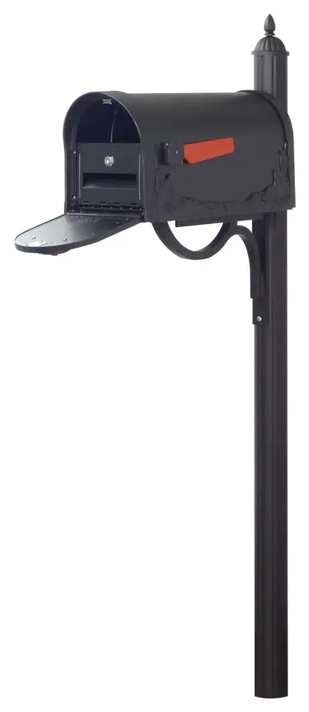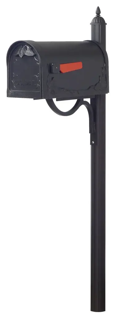 The traditional mailbox shape gets a decorative upgrade with our Floral curbside mailbox. Deeply embossed leaf designs on all sides gives the Floral curbside a charming apperance suitable for either a country of suburban home.This fluted Direct Burial Mailbox Post is made of durable cast and extruded aluminum with a powder coated finish for a lifetime of beauty. 3" outer diameter x 77 1/2" H Fluted Post. Includes decorative mailbox mounting bracket and pole topper.This mailbox combination also includes an easy to install locking insert, to help protect from identity theft. Manufactured from rust free powder coated aluminum, the Lock Box firmly attaches to the bottom of the mailbox and cannot be removed without the key. The Lock Box insert is easly installed with four screws (included). Consult your local postmaster regarding regulations governing the installation of locking inserts.