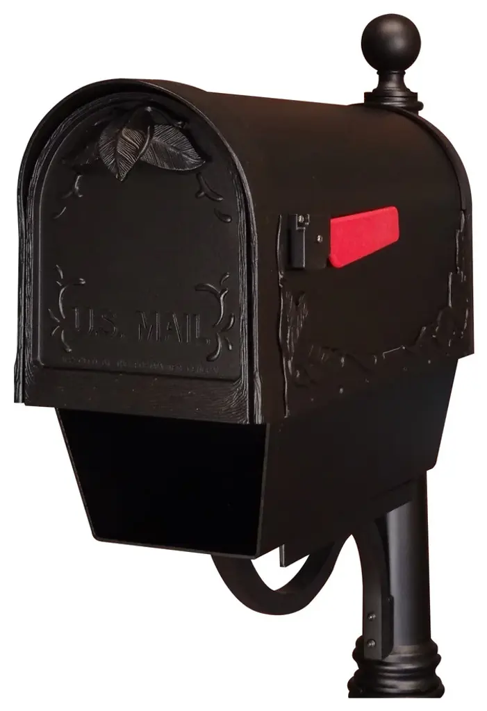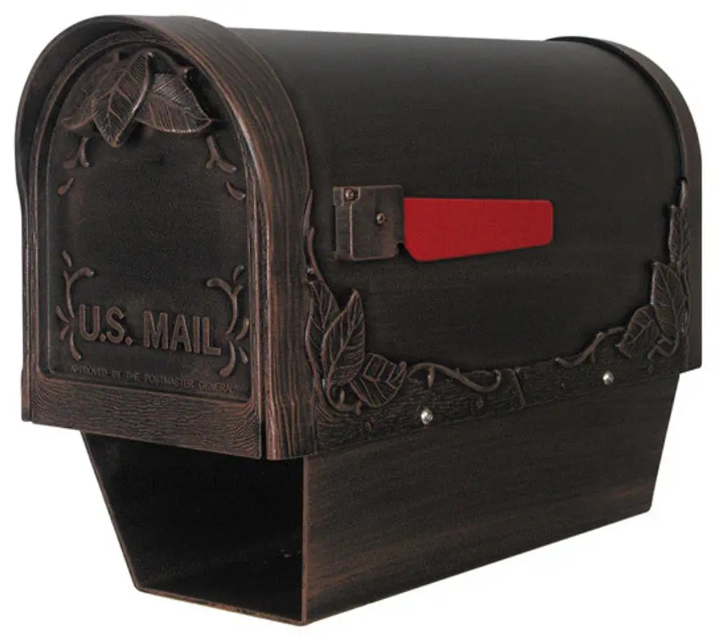 • Please see additional images for color swatch The traditional mailbox shape gets a fanciful upgrade with our Floral Curbside Mailbox. Deeply embossed leaf designs on all sides gives the Floral Curbside Mailbox a charming appearance suitable for either a country or suburban home.