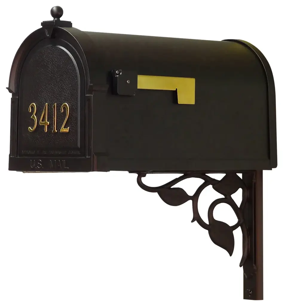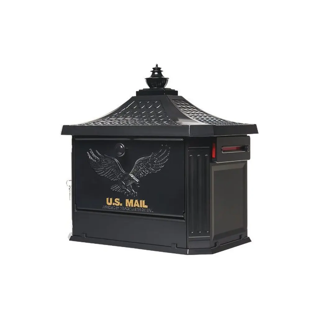 Gaines Mfg Keystone Curbside Black Mailbox, Polished Brass, Eagle