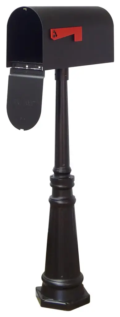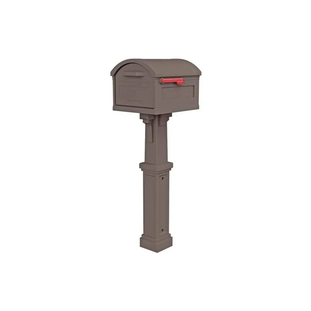 The Grand Haven is an all in one mailbox kit featuring a plastic T4 size mailbox. Provides extra-large capacity to receive packages. It is made of heavy-duty rust-proof plastic that provides performance and durability. Magnetic door latch keeps mailbox closed. Space provided for address letters or numbers. Textured powder coat finish. Mounting and installation hardware is included.
