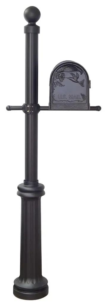 The striking hummingbird details on both sides and the front of this mailbox make it more than your average mailbox. The deeply embossed designs show your love of nature and will last through a lifetime of weathering.This Fresno Direct Burial Mailbox Post is made of durable cast and extruded aluminum with a powder coated finish for a lifetime of beauty. 3" outer diameter x 76" H Fluted Post. Includes decorative mailbox mounting bracket and cannon ball post topper and wrap around base.