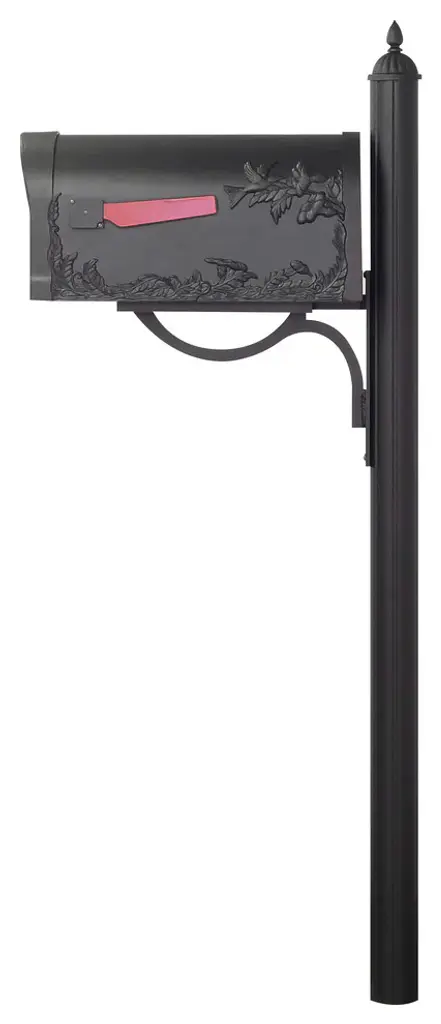The striking hummingbird details on both sides and the front of this mailbox make it more than your average mailbox. The deeply embossed designs show your love of nature and will last through a lifetime of weathering.This fluted Direct Burial Mailbox Post is made of durable cast and extruded aluminum with a powder coated finish for a lifetime of beauty. 3" outer diameter x 77 1/2" H Fluted Post. Includes decorative mailbox mounting bracket and pole topper.