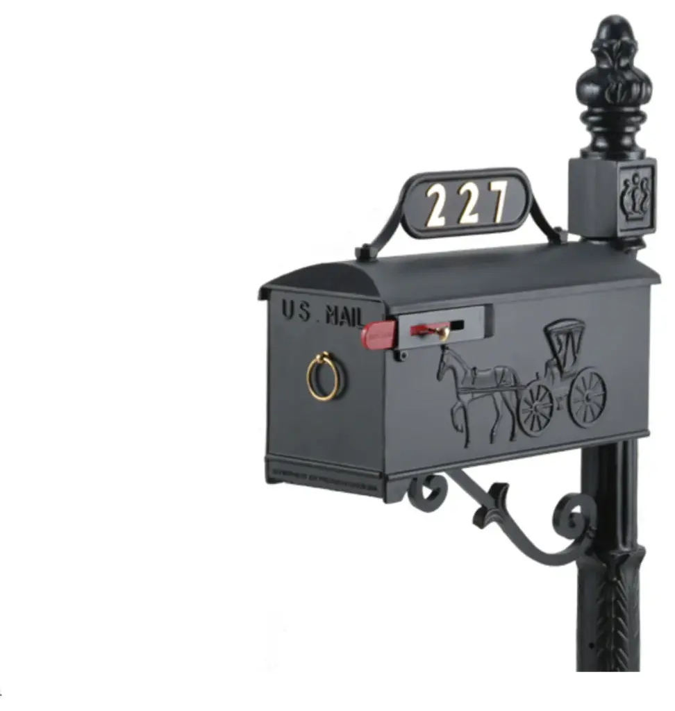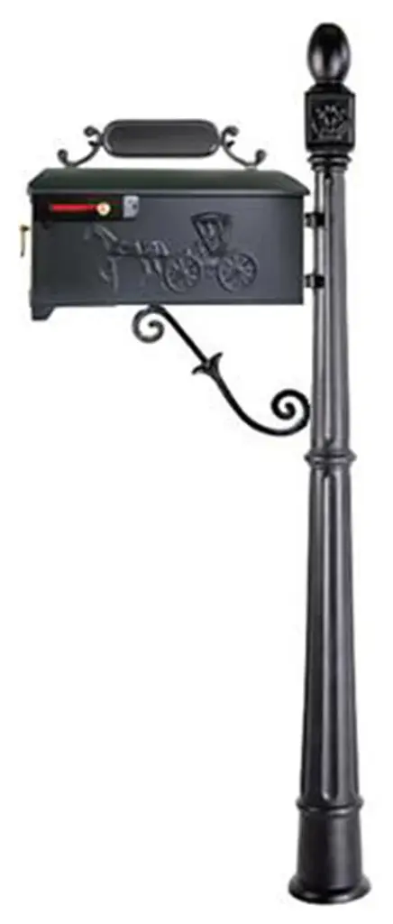 The Imperial line of products are sand casted solid aluminum, and assembled to be of the highest quality. They are equipped with a single cast post, number plate, and support bracket.Our mailboxes are not only approved for all new construction, but enhance the beautification of a residential, commercial or governmental developments.DIMENSIONS:Post Dimensions: 58.5" H x 6" W x 6" DMailbox Dimensions: 7"W X 8"H X 19"LWeight: 60 lbs.CONSTRUCTION:Rust free aluminumFEATURES:Hardware includedInstructions included