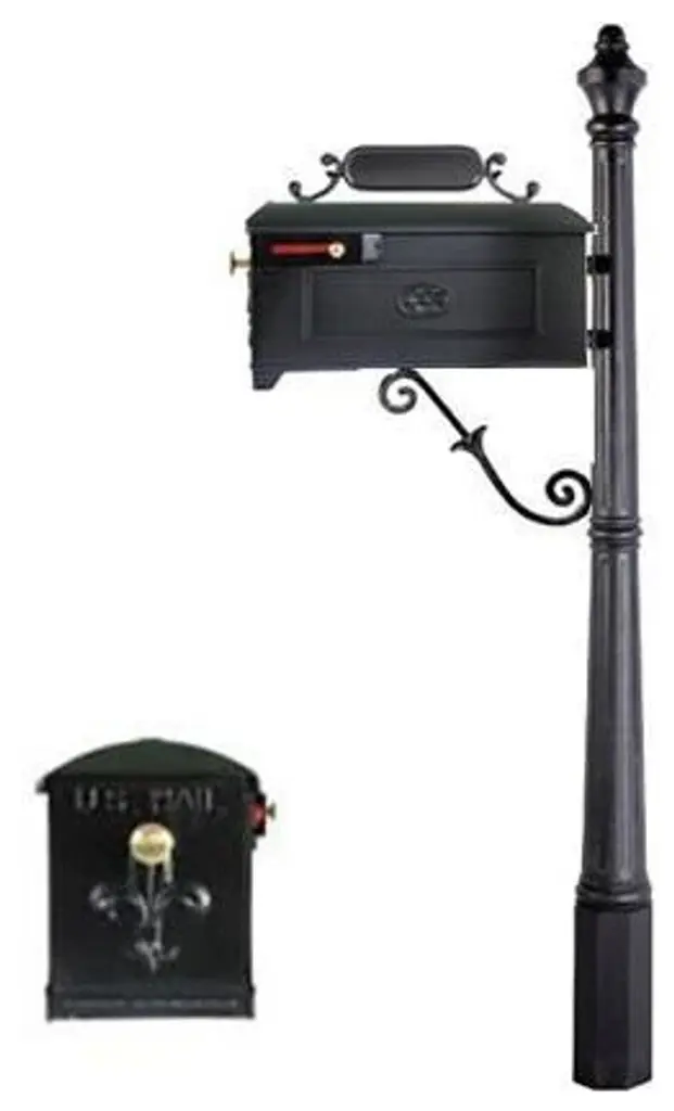 The Imperial line of products are sand casted solid aluminum, and assembled to be of the highest quality. They are equipped with a single cast post, number plate, and support bracket.Our mailboxes are not only approved for all new construction, but enhance the beautification of a residential, commercial or governmental developments.DIMENSIONS:Post Dimensions: 58.5" H x 8" W x 8" DMailbox Dimensions: 7"W X 8"H X 19"LWeight: 60 lbs.CONSTRUCTION:Rust free aluminumFEATURES:Hardware includedInstructions included