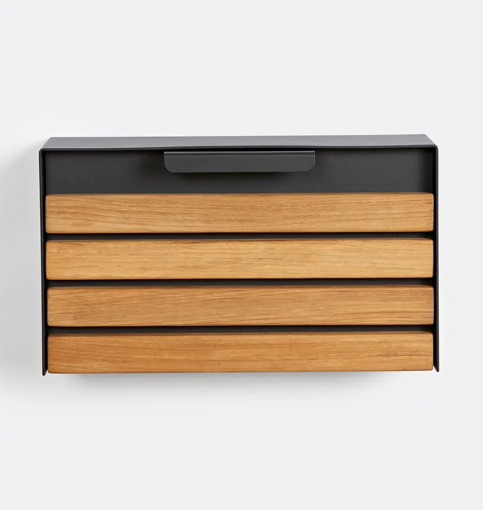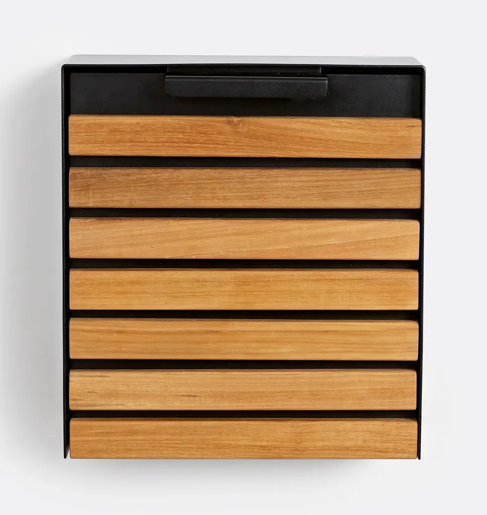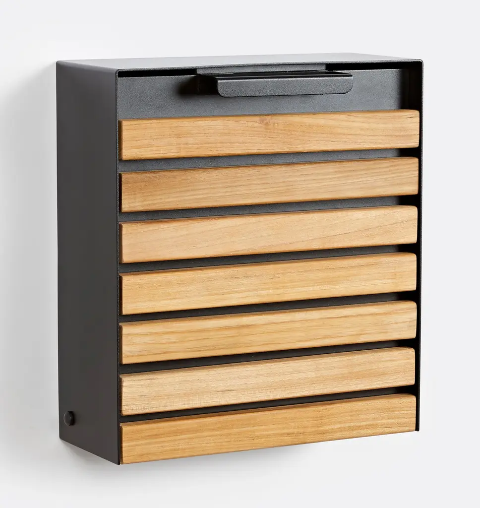 Designed to easily mount on any entry or front porch, our Northwest Modern-inspired Jasper Teak Mailbox features a lock to keep your mail safe. Crafted from powder-coated aluminum and FSC-Certified Grade A-teak which naturally repels water and will age beautifully over time, it coordinates with our Jasper Planters and Outdoor Furniture Collection. Available in two sizes.