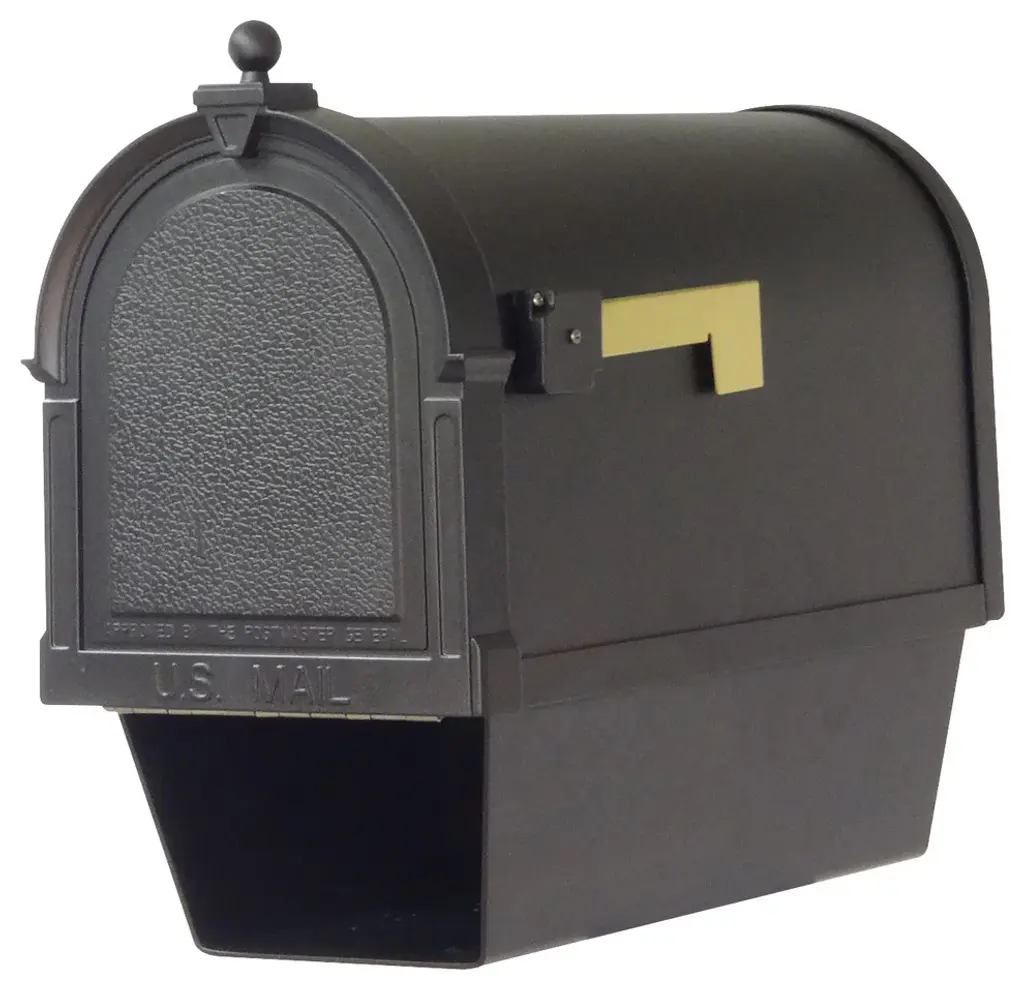 • Please see additional images for color swatch Our Kingston Curbside Mailbox has universal appeal with this smooth geometric styling accented with a simple decorative embossing. The low profile belies the spacious interior. The Kingston, like all of our mailboxes, is manufactured from rust-proof casDurable Powder Coated FinishNo Mounting Board Required.Will Not Rust.