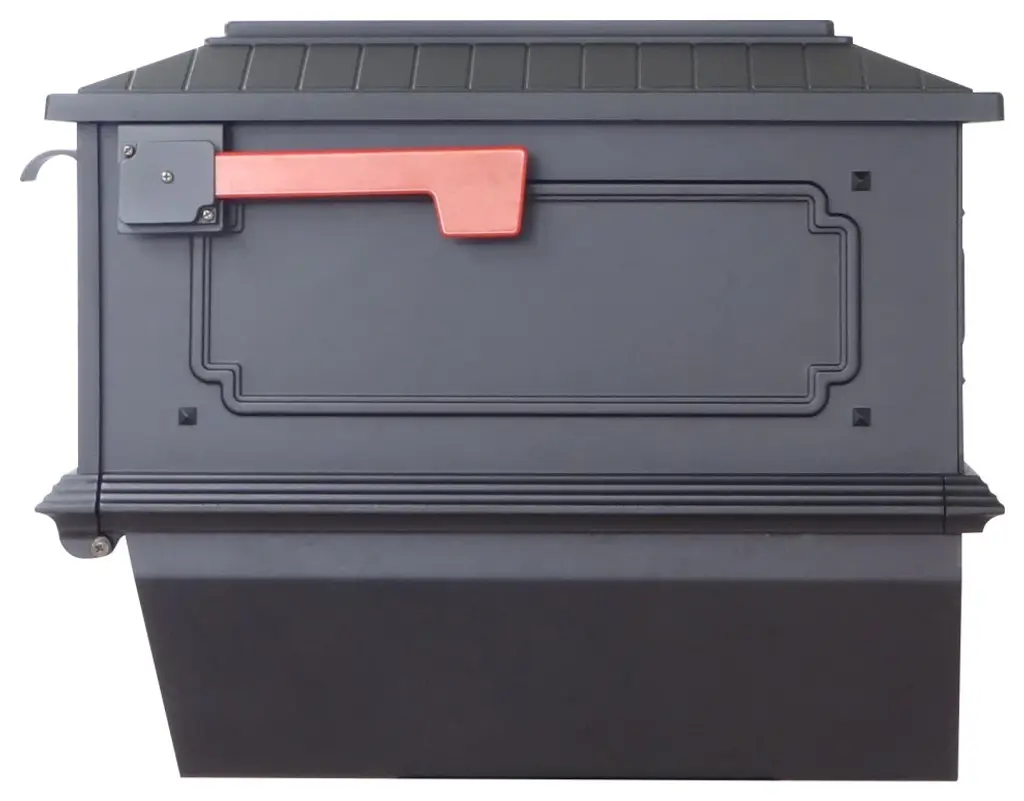 • Please see additional images for color swatch Our Kingston Curbside Mailbox has universal appeal with this smooth geometric styling accented with a simple decorative embossing. The low profile belies the spacious interior. The Kingston, like all of our mailboxes, is manufactured from rust-proof casDurable Powder Coated FinishNo Mounting Board Required.Will Not Rust.