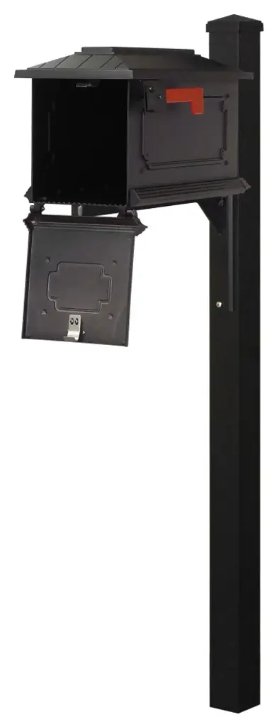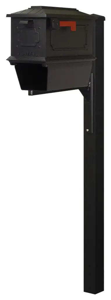 Our Kingston Curbside Mailbox has universal appeal with this smooth geometric styling accented with a simple decorative embossing. The low profile belies the spacious interior. Sturdy with clean lines the Wellington post fits perfectly with any style of home architecture. If you are looking for a geometric design that adds more curb appeal to your home, the Kingston and Wellington are for you. The adjustable door latch mechanism will allow you the modify the amount of tension when opening and closing the door. No matter your preference the door will stay secure while the rust proof cast aluminum, powder coated body construction creates a weather resistant mailbox. The Kingston�s size will fit your important mail, documents, packages and keep them dry. The housing around the die cast flag is finished to match the body and will ensure the flag will stay upright to signify pickup at your mailbox. The side panels of the Kingston easily will accommodate 3-inch address digits. No mounting plate is required. Newspaper tube included.The traditional square mailbox post design with a decorative upgrade! Sturdy with clean lines the Wellington post fits perfectly with any style of home architecture. Quick and easy direct burial will make assembly simple. No wood post needed! This is not a sleeve like many other companies use. This is a single 3" x 3" aluminum sturdy bodied post capped with a pyramid topper. The contemporary aluminummounting bracket easily attaches to the post. Made entirely of aluminum with stainless steel components to eliminate rusting. Direct burial installation is required.
