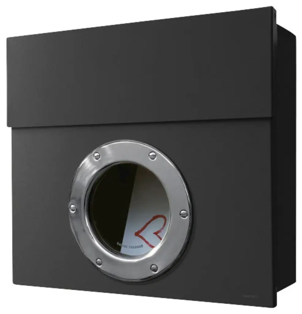 The Letterman 1 Mailbox is a practical mailbox with a striking porthole and an excellent finish. The mailbox is available either in stainless steel or nickel-plated, powder-coated steel.