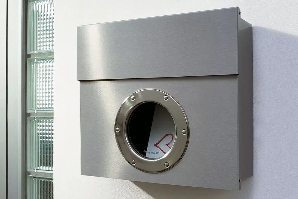 The Letterman 1 Mailbox is a practical mailbox with a striking porthole and an excellent finish. The mailbox is available either in stainless steel or nickel-plated, powder-coated steel.