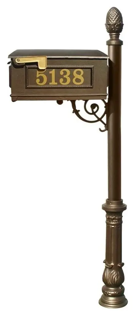Mailbox Post System-Decorative Ornate Base-Gold Vinyl Personalized Number, White