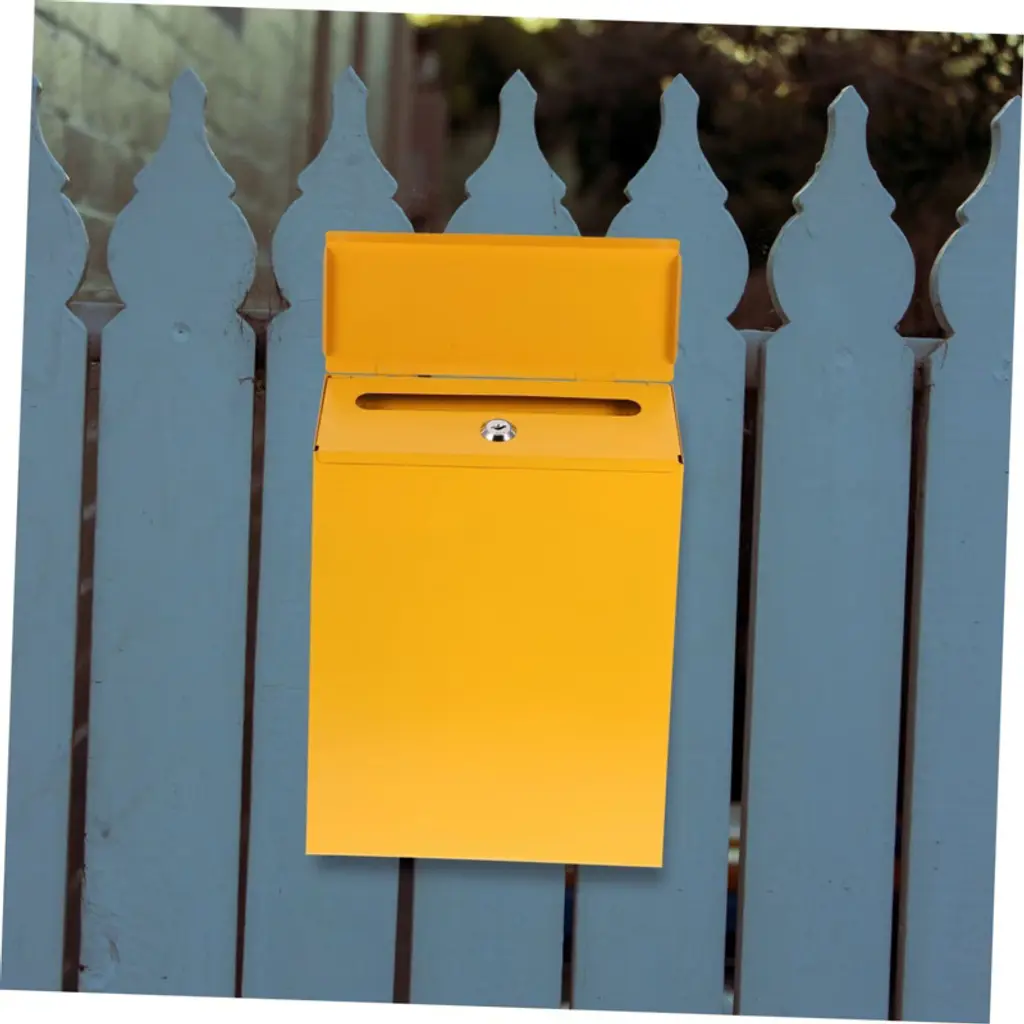 Description: Name: Mailbox Material iron Colors yellow, red, white Product size 2.36 inches deep x 8.46 inches wide x 2.36 inches high Packing list: Mailbox x 1