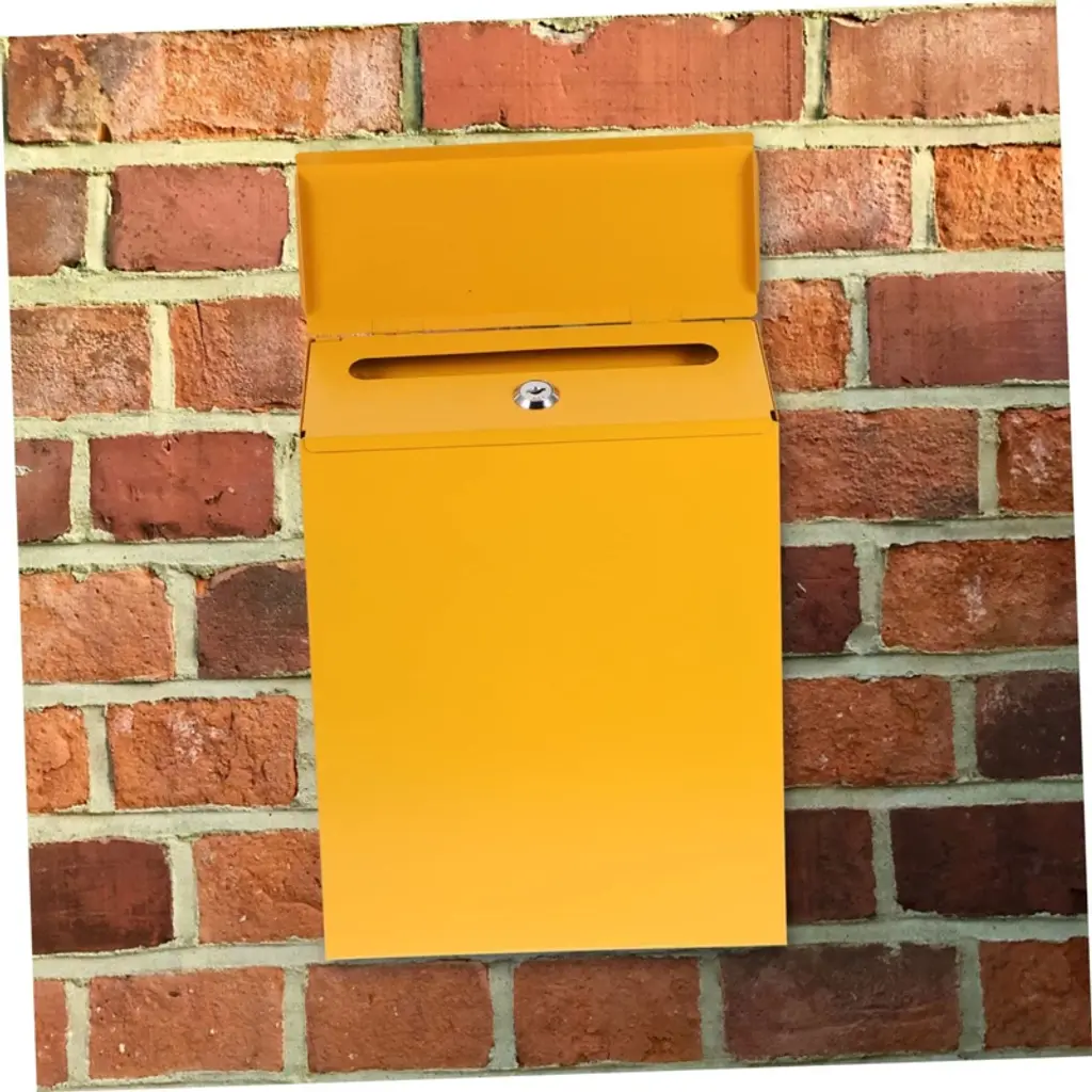 Metal Wall Mount Drop Lock Box, Locking Mailbox Hanging Secure Postbox For Front Door Office Outdoor Garden Wall Hanging Decor Yellow