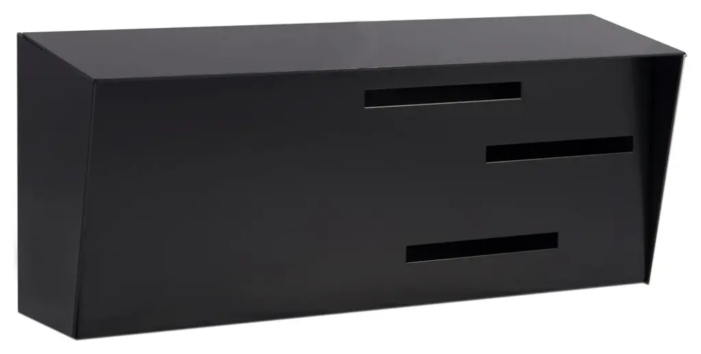 Modern Mailbox inspired by Mid-Century Modern design. Perfect for your Mid-Century Modern or Atomic Ranch home. Original design featuring clean modern lines and hidden hardware. Handmade in America using durable aluminum, finished with an ultra modern monochromatic powder coating. Wall mounted for easy installation. Top opening lid. 14.25" long x 4" deep x 6" tall.