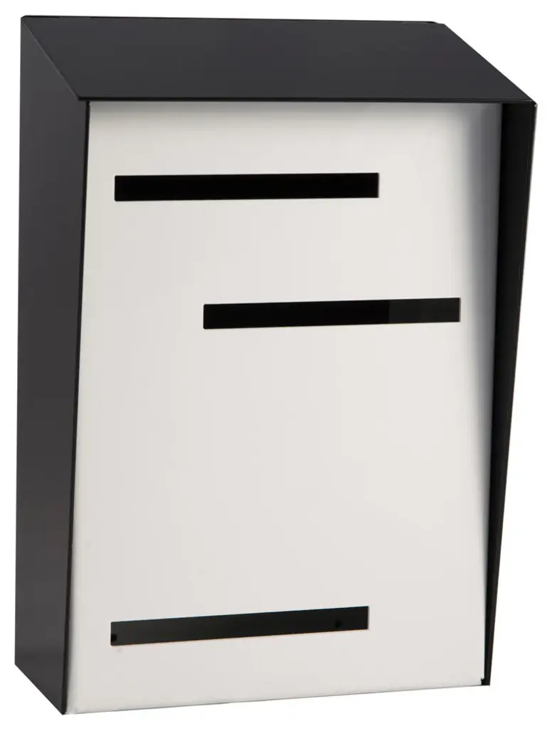 Mid Century Modern Mailbox, Two Tone Stainless, Vertical Large, Black