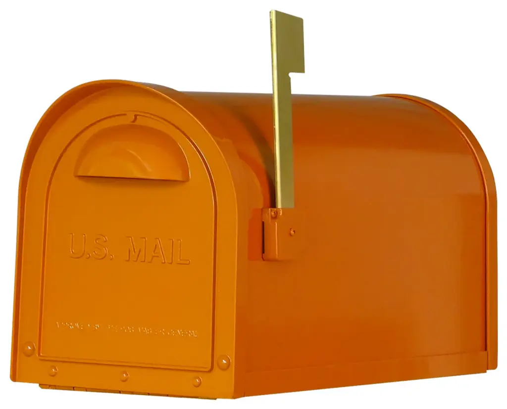 The Dylan mailbox gives a modern appearance with a functional design and mid-century style. The Dylan is a beautifully unique mailbox because of its revived stylish design and solidly made construction. The 1960�s inspired finish combines with a cast aluminum body that is durable and creates an in-fashion addition to your front yard. The stainless-steel spring hinge and strong magnetic door latch will keep the door secure while the rust proof cast aluminum, powder coated body construction creates a weather resistant mailbox. Roomy and spacious, the Dylan will fit your important mail, documents, packages and keep them dry. The housing around the flag is finished to match the body and will ensure the flag will stay upright to signify pickup at your mailbox. The new-fashioned look and durability of the Dylan come together give your home a curbside accent that you can enjoy for a lifetime.