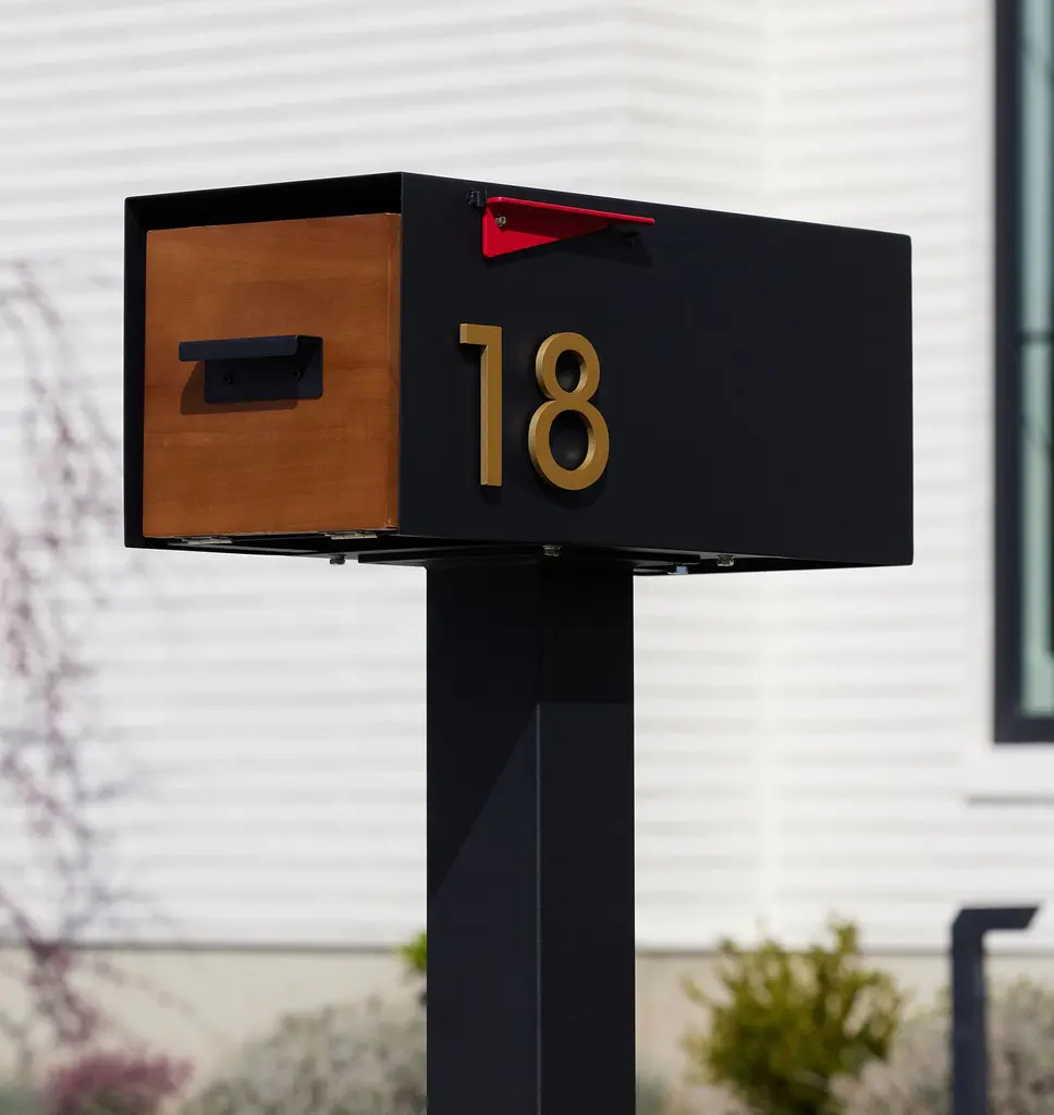 Sleek and modern, our Malone Mailbox features a simplified silhouette crafted from powder-coated steel with a weather-resistant pine wood door and includes a mounting post.