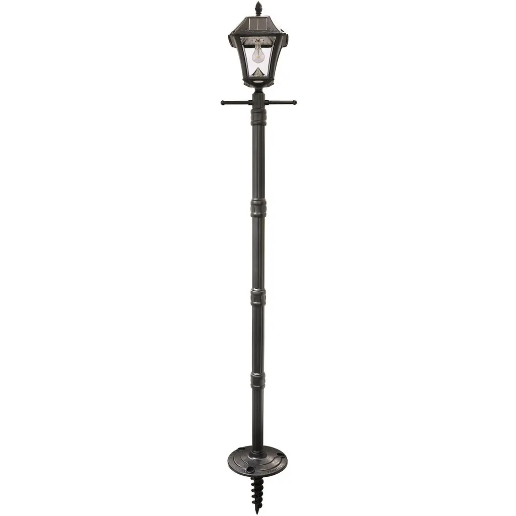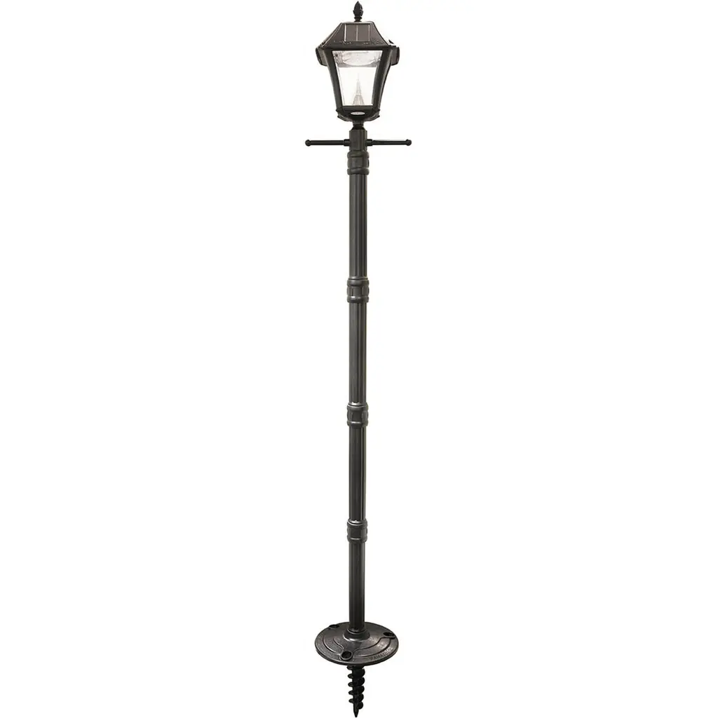 Lewiston post w/ economy #1 mailbox, fluted base in bronze color with black solar lampLewiston Post / Economy #1 Mailbox comes with support brace and ornate base in bronze color. Black Economy #1 Mailbox is made of galvanized metal with smooth finish, steel latch and red aluminum flag. Post, support brace and ornate base are made of rust-free cast aluminum with a weather resistant finish. The Bayview Solar Lamp mounts to the top of the post and features a classic gas-light design with real beveled glass panes. With our super-bright LED''s and patented cone reflector technology, guests will easily spot your address at night. Using efficient solar-powered technology, the Bayview charges by day and automatically turns on at night. No wiring is needed. And with a weather-resistant powder-coated cast aluminum frame, no maintenance is required. (Solar lamp available in color black only) Beautiful bronze post with fluted base and solar lampSolar lamp charges by day, automatically turns on at dusk. Impact resistant and requires no wiring.The post mounts deep down into your lawn or sidewalk and is made from solid cast aluminumProtective, weather-resistant, black powder coated finishIncludes mailbox mounting bracket and support braceComes with E1 Economy mailbox, which is made of galvanized steel with a smooth rust-resistant finish, steel latch and red aluminum flag.Materials - Aluminum Post, Steel Mailbox, Powder CoatProduct Height - 5 '' 2"Product Width - 6.5"Product Depth - 19"Product Weight - 37