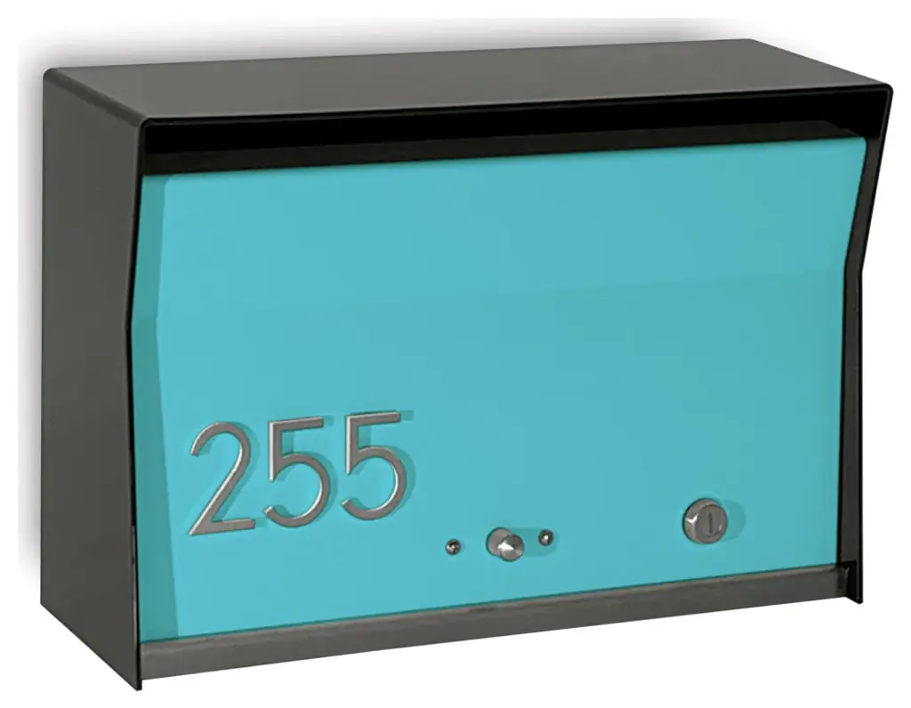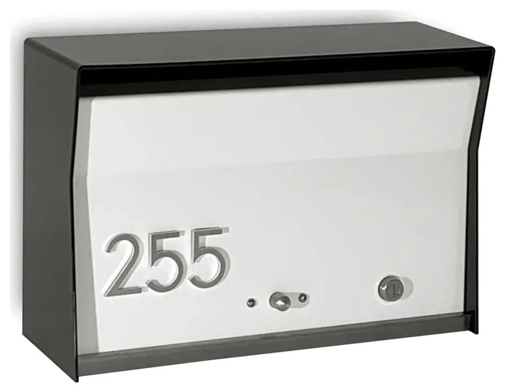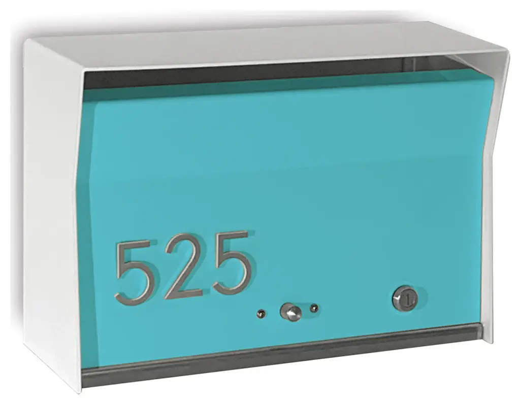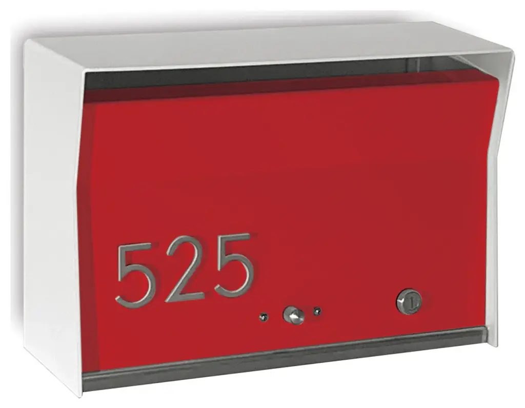 -The RetroBox Locking Wall Mounted Mailbox is a Mid-century modern inspired locking mailbox, the perfect curb appeal for your home, office, condo or development. Made of quality materials, here in the USA.-Give a little midcentury modern touch to any architectural style with the RetroBox Locking Wall Mounted mailbox. Large enough to hold days of mail and locking to keep your mail secure. -The RetroBox Wall Mounted Mailbox in Arctic White is available in 12 different door finishes, can be ordered with stainless steel numbers in your choice of number styles, (Retro or Uptown), WE WILL CONTACT YOU FOR THE STYLE ADDRESS NUMBERS ON THE BOX, IF YOU DO NOT WANT NUMBERS YOU CAN LET US KNOW THAT ALSO.-Each RetroBox Wall Mounted Mailbox body is made out .125"? 5052-H32 aluminum, powder coated with marine grade paint in a variety of colors The base all other parts are out of 16 gage #4 finish stainless steel.The mail Box is 15"? wide, 5-5/8"? deep and 10"?tallNote: Box should be installed in an area with an overhang.Ships in 3 to 4 weeks