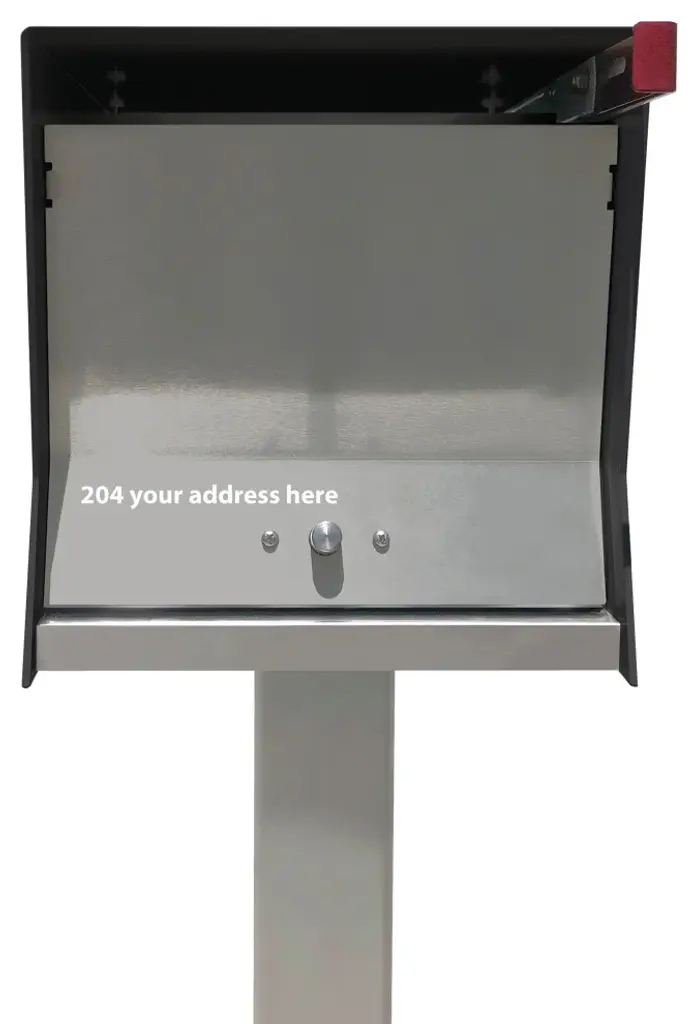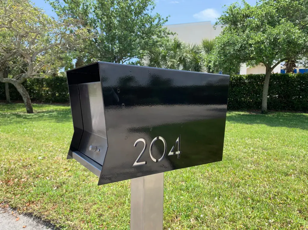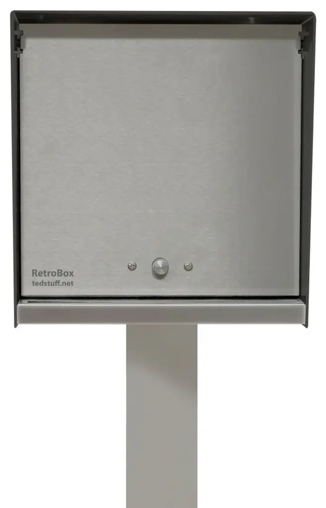 -The Retrobox is a Mid-century modern inspired mailbox, the perfect curb appeal for your home, office, condo or development. Made of quality materials, here in the USA. The Retrobox has a mail slot in the front for easy mail delivery and the doors open from the front and the back, so you can retrieve mail without stepping into the street. -The RetroBox is available with an Arctic White or Jet Black Outer Shell with 8 different door colors or Stainless Steel to choose from.-Each Retrobox body is made out .125"? 5052-H32 aluminum, powder coated with marine grade paint and custom anodized doors and number backings. The base is made out of 18 gage #4 finish stainless steel. Each box has custom laser cut address numbers on the sides, with laser engraved street address on the front door. -The Locking Kit, locks the front and back door from unwanted opening only by you. Mail is easily deposited threw the mail slot. 4 keys are included, and all keys will open the front and back door.The mail Box is 10"? wide, 17"? deep and 10"?tall and will hold days if not weeks of mail,• • • • • • POLE NOT INCLUDED, SEE OPTIONAL INFORMATION BELOW• • • • • • • • -The optional pole is 3"? x 3"?, heavy duty extruded tubing. Pole price is $165.00 for a powder coated aluminum post available in white, black or coconut. The Stainless steel pole is listed at $249.00.SEE OTHER TedStuff Listings,Houzz product ID# 150426410SKU: MAILBOXPOLE-The optional Light Kit makes finding your address at night easy for visitors, delivery services, car services, etc., as well as makes a statement in your neighborhood. By illuminating the side numbers at night with low voltage LED lighting that needs to be connected by you, to your low voltage landscape lighting. The requirements you must have to connect to, is a low voltage transformer of 12 watts The lighting kit will be installed and prewired for easy installation.Additional light kit price is $155.00SEE OTHER TedStuff Listings,Houzz product ID# 152437951SKU: MAILBOXLIGHTShips in 3 to 4 weeksIMPORTANT, PLEASE REACH OUT TO THE SELLER WITH THE ADDRESS YOU WANT LASER ENGRAVED AND CUT IN THE SIDES OF YTHE BOX WHEN CHECKING OUT.