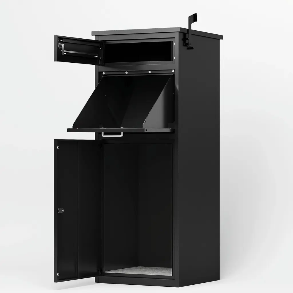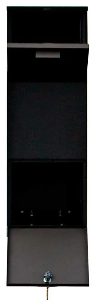 The Vacation Mailbox ONLYThis large capacity high security mailbox, made of durable powder coated 18-gauge steel is designed for the traveler. This mailbox combines the simplicity of a Non-LockingOur traditional mailbox for everyday use and the security of a locking mailbox while out of town. The sturdy hinged hopper door is large enough to accept small packages and will keep weeks'' worth of mail safe. The Mailbox is labeled inside providing easy to follow and simple instructions for the delivery carrier and features a black powder coat finish.Made of durable powder coated 18-gauge steel, will keep weeks" worth of mail safe and accepts small packagesThe sturdy hinged hopper door is large enough to accept small packages but keeps unwanted hand outThe locked access door features a hook latch locking system that latches through the Frame. Comes with 2 keysMailbox Dimensions: 10-1/4" widex29-1/2 inch highx23 inch deepThis mailbox can be mounted on the Vacation Mailbox post or in a column or wall.Product Dimension: 11.5"x5.5"x14.5"Color: Black