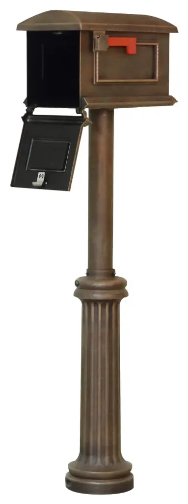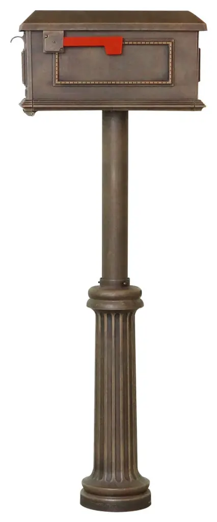 Our Traditional curbside mailbox has universal appeal with it''s smooth geometric style, accented with a simple decorative braid. The low profile belies the spacious interior. No mounting plate required. The Tacoma surface mount mailbox post is made of cast and extruded aluminum. Post dimensions are 42" H x 9" Dia. Base