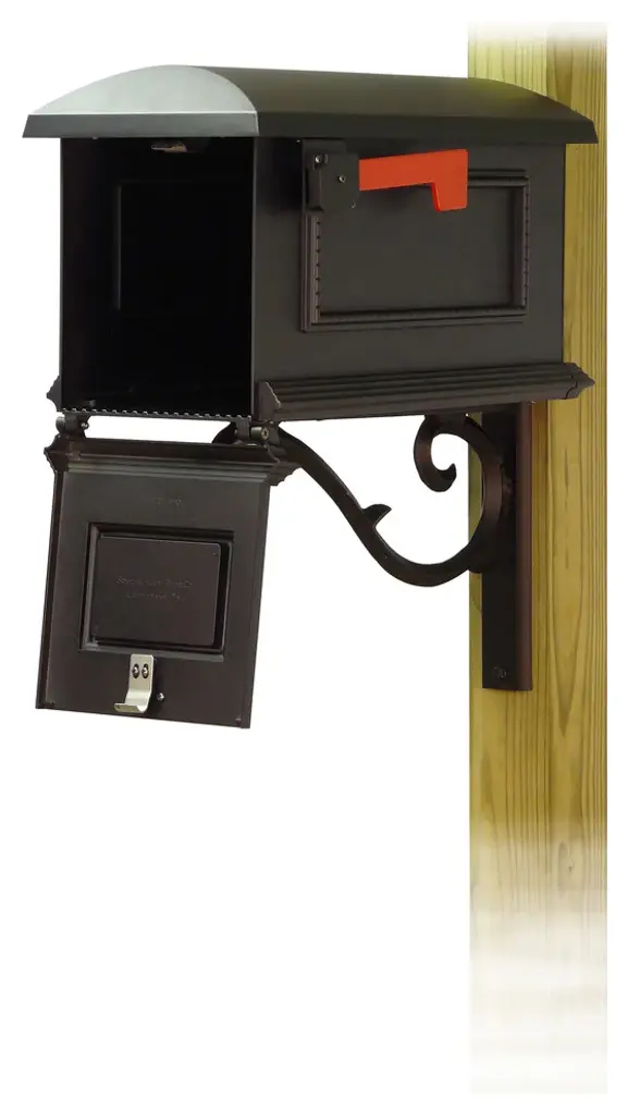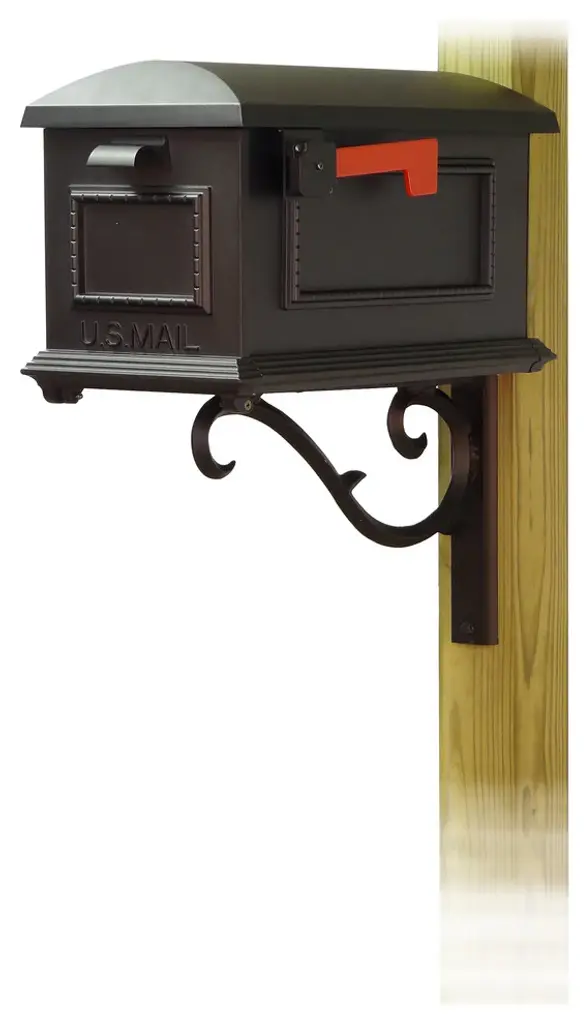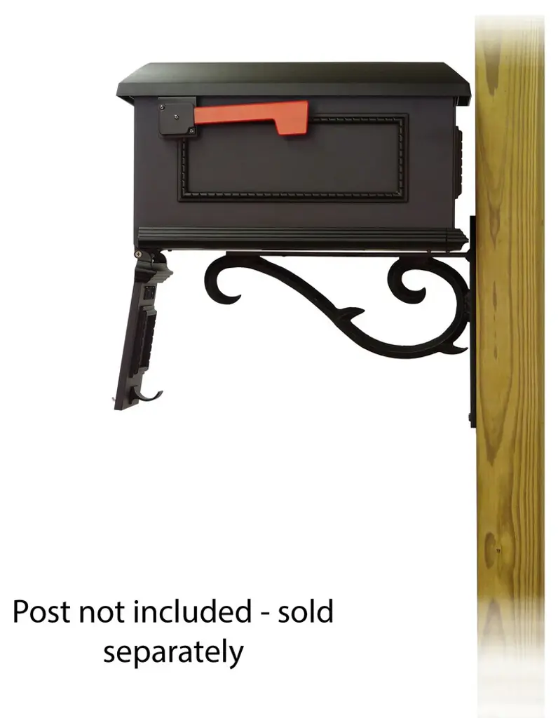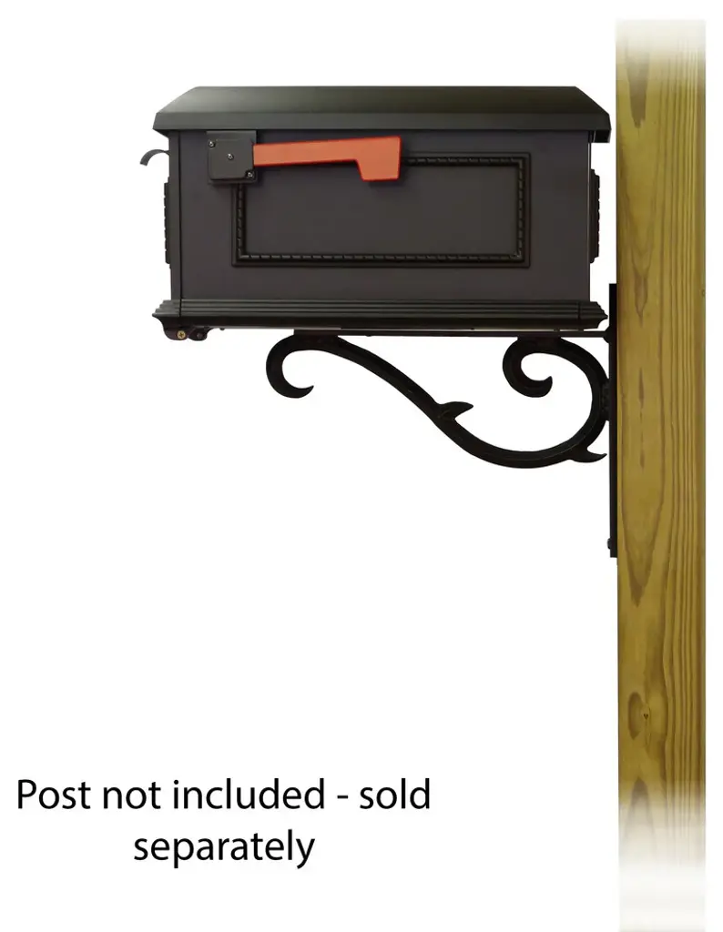 The Traditional Mailbox and Sorrento mounting bracket combination presents a upscale option for the typical wood post curbside mailbox. The Traditional Curbside Mailbox has universal appeal with it''s smooth geometric style, accented with a simple decorative braid. The low profile belies the spacious interior. No mounting plate is required. The Sorrento mounting bracket is an elegant cast aluminum scroll that will give a high class, decorative appearance to your mailbox. Mailbox and mailbox mounting bracket included. This set does NOT include a post as it is intended to be mounted on an existing wood post or solid surface, or a new wood post that can be purchased separately. Mounting hardware is included.