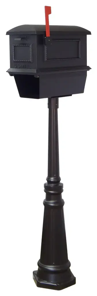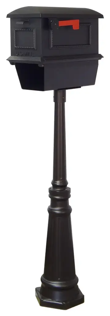 The Traditional Curbside Mailbox has universal appeal with it''s smooth geometric style, accented with a simple decorative braid. The low profile belies the spacious interior. No mounting plate is required. Newspaper tube is included.The Tacoma surface mount mailbox post is made of cast aluminum. Post dimensions are 42" H x 9" Dia. Base. A direct burial kit is included for easy installation into soil.