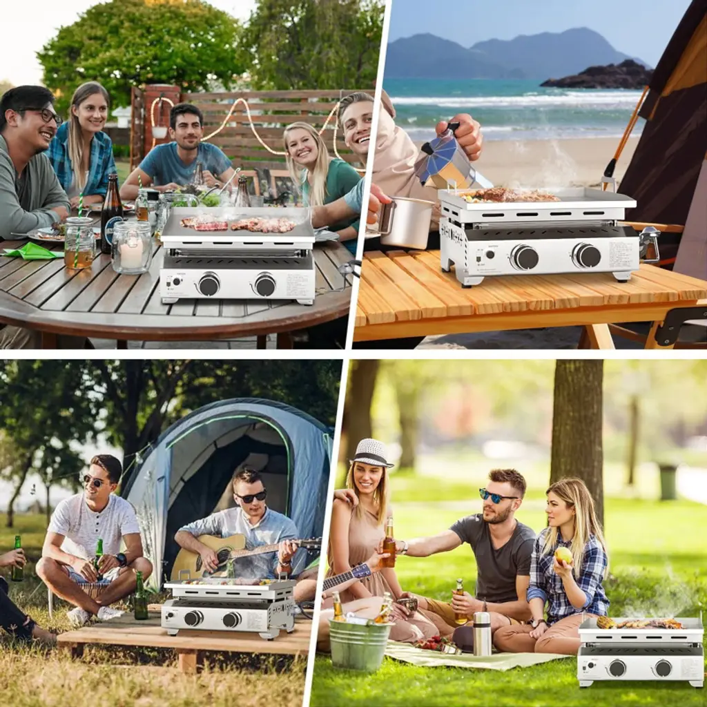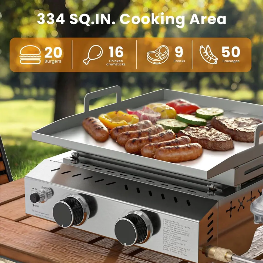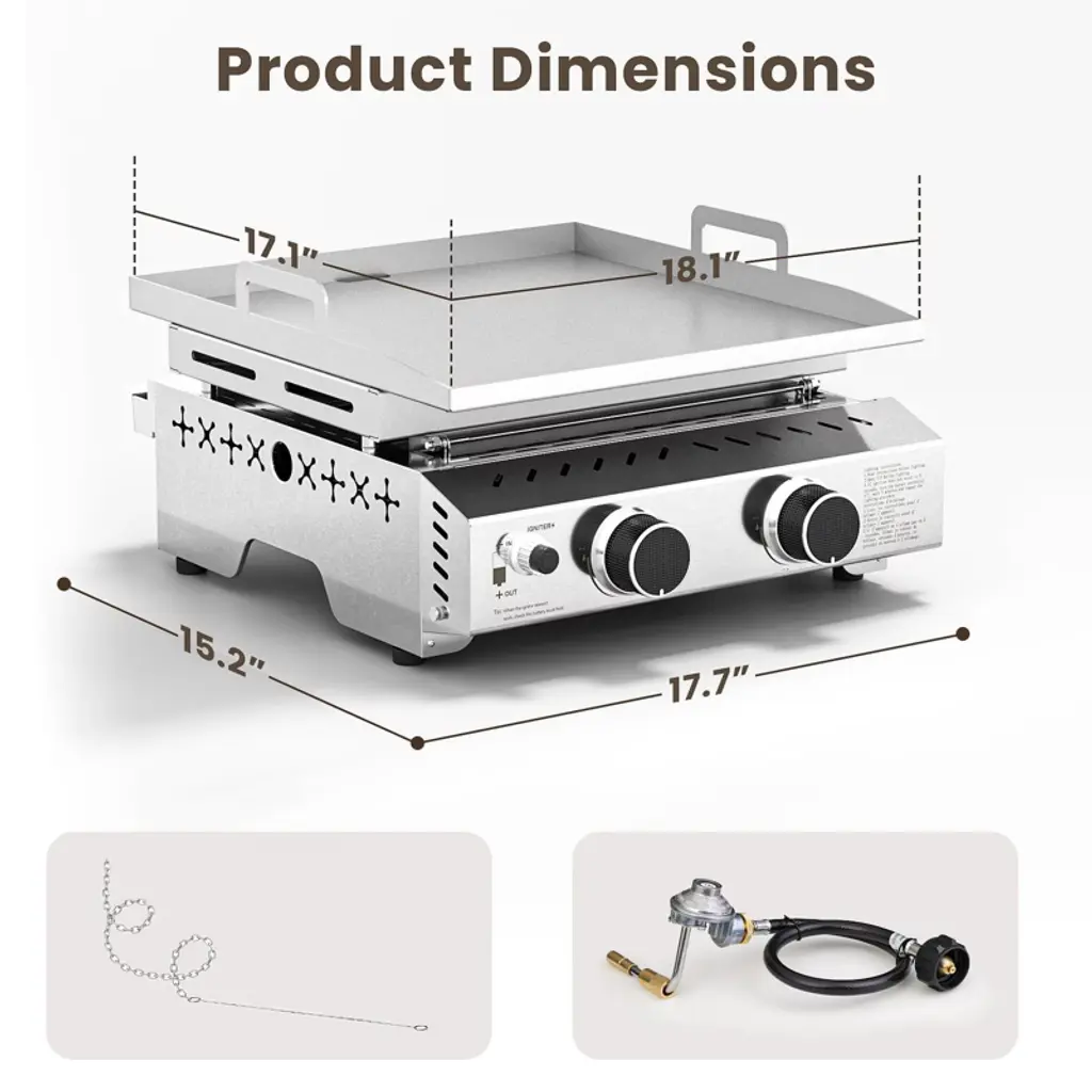 Kismile 2 Burner Food Grade Sus304 Tabletop Griddle, 16,000 Btu 310 Sq. In. Portable Propane Gas Griddle