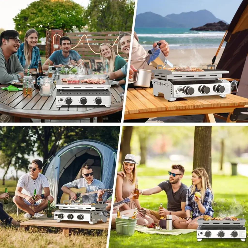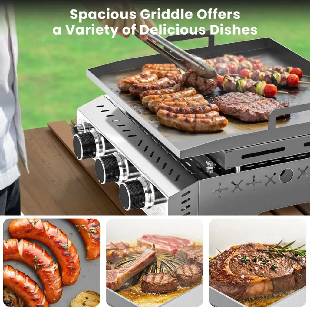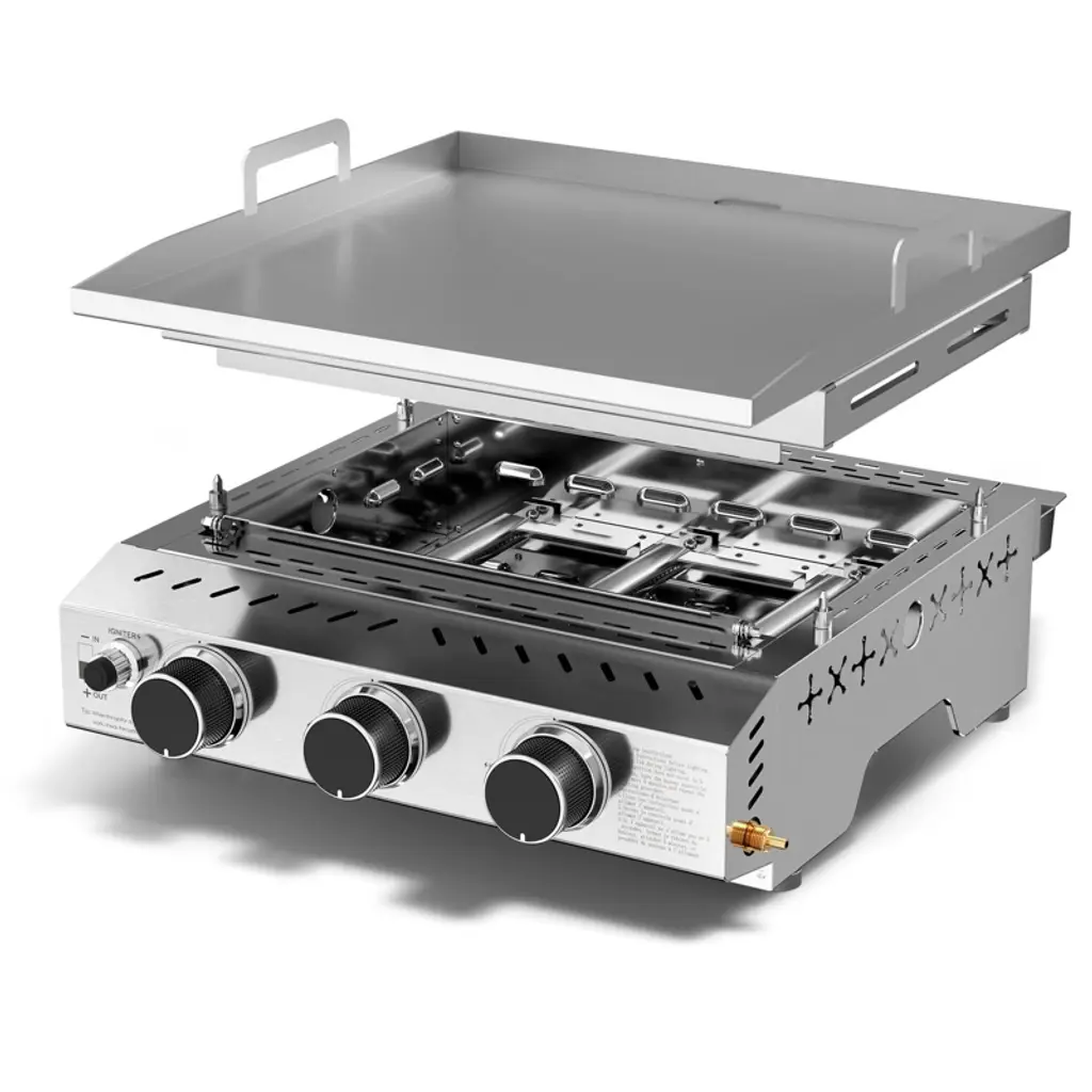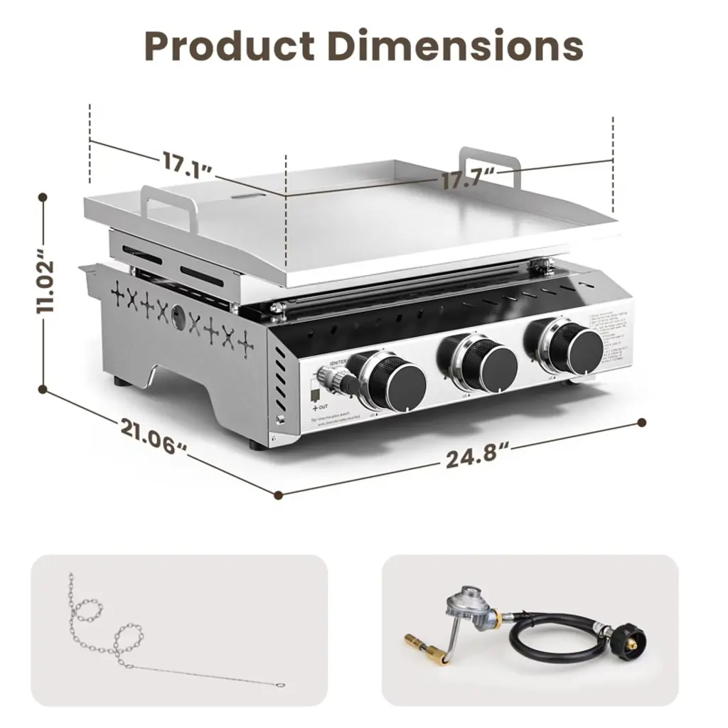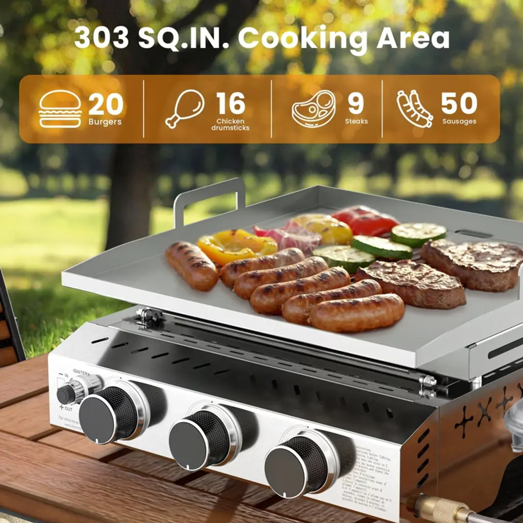 Kismile 3 Burner Food Grade Sus304 Tabletop Griddle, 24,000 Btu 303 Sq. In. Portable Propane Gas Griddle