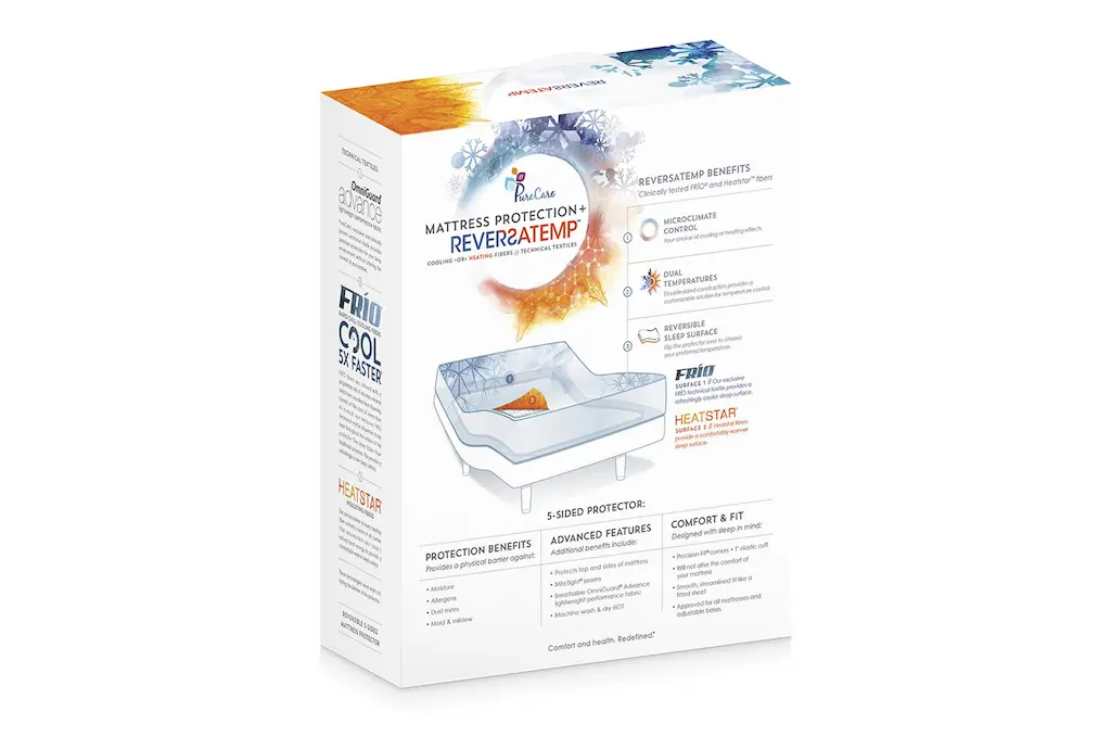 Pure Care Reversatemp 5-Sided Cotton Queen Mattress Protector | Machine Washable