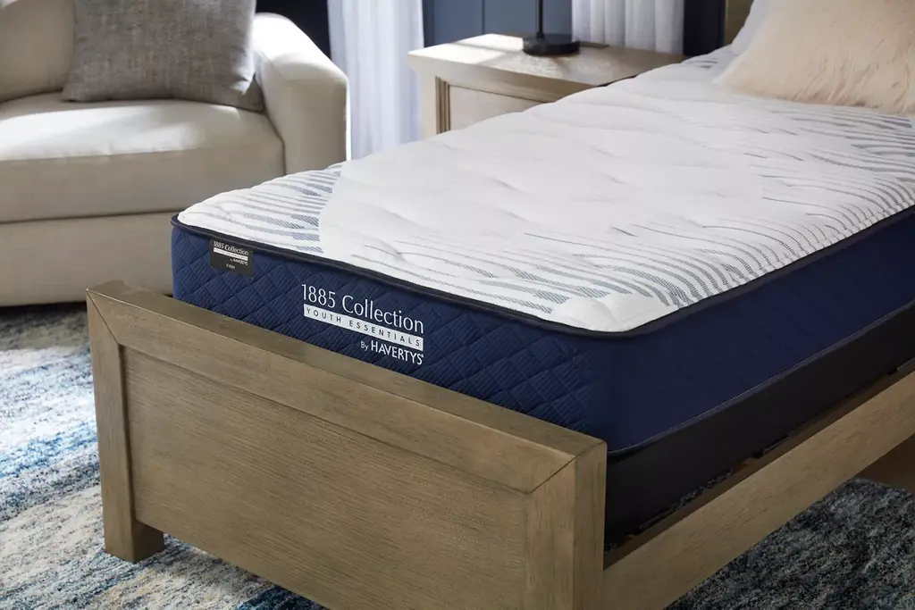 The Youth Essentials firm is designed to feel like you're lying on top of the mattress rather than sinking in, with firmer foams for balanced resistance. A perfect balance of comfort and uplifting support. Multiple layers of certified CertiPUR-US foam to provide the perfect balance of support and pressure-relieving comfort. You can depend on the Youth Essentials Firm to deliver consistent and stable sleep for the life of the mattress. The height of this mattress is 8". The Youth Essentials Firm mattress is backed by a 5 Year Non-Prorated Warranty.