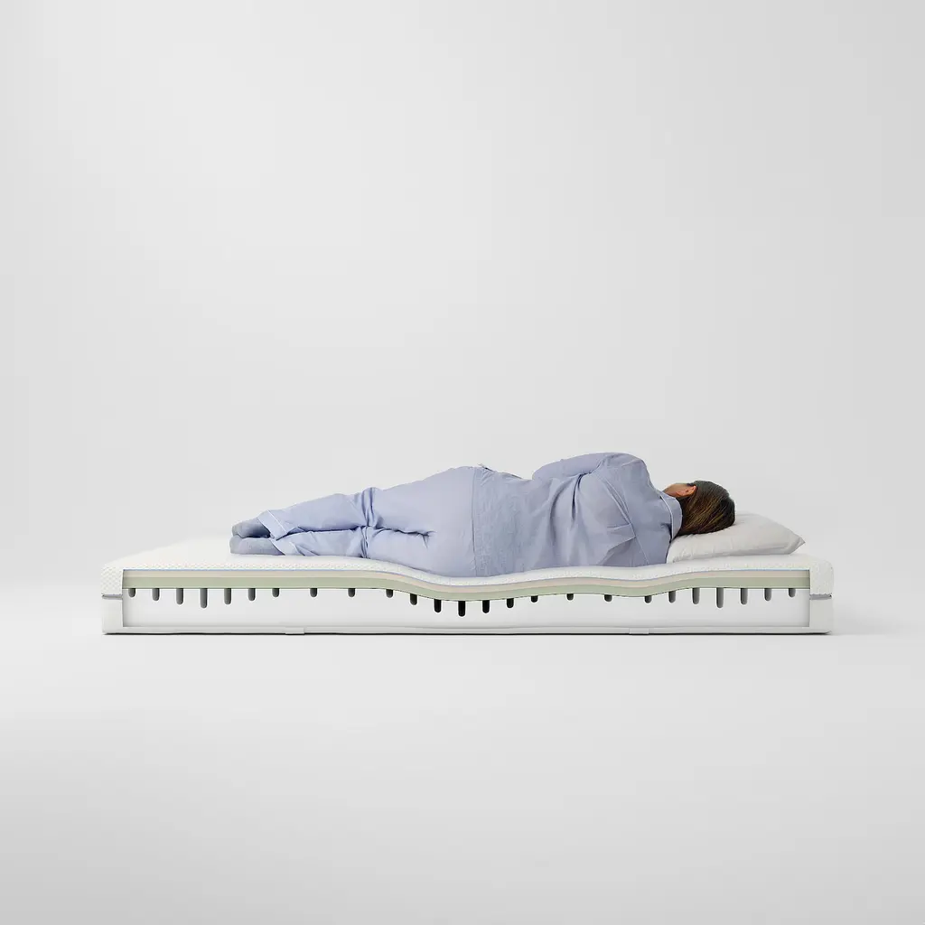 ÅBROTTEN Foam mattress - medium firm/white King. Temperature regulating material above 3 carefully selected layers of foam for support and comfort. The top layer stays cooler as you sleep and helps to regulate your body temperature during the night. Care instructions can be found inside the cover.