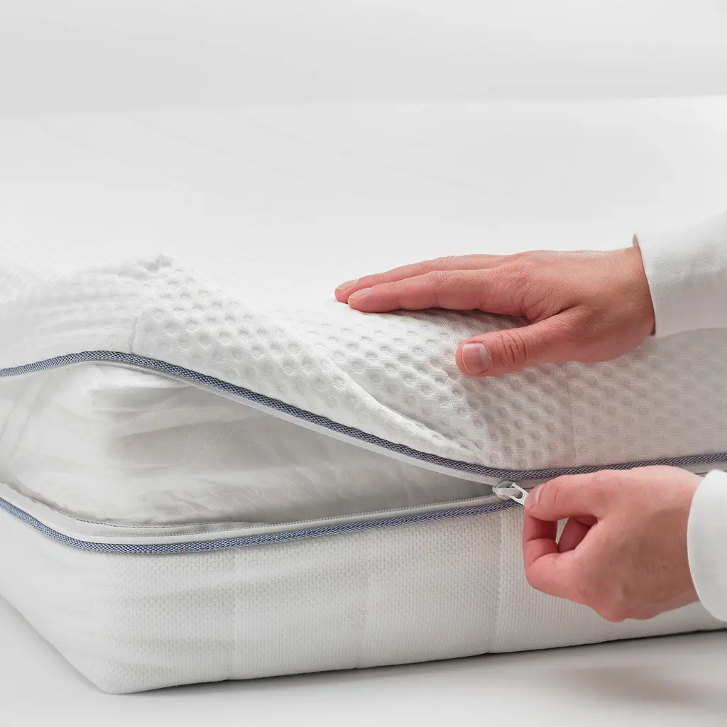 ÅBROTTEN Foam mattress - medium firm/white Queen. Temperature regulating material above 3 carefully selected layers of foam for support and comfort. The top layer stays cooler as you sleep and helps to regulate your body temperature during the night. Care instructions can be found inside the cover.