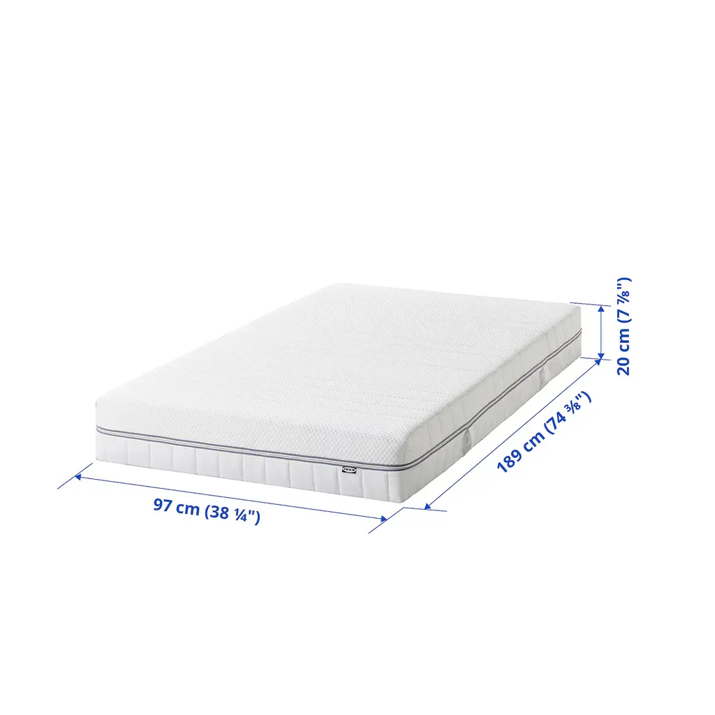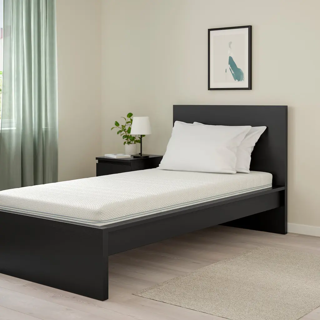 ÅBROTTEN Foam mattress - medium firm/white Twin. Temperature regulating material above 3 carefully selected layers of foam for support and comfort. The top layer stays cooler as you sleep and helps to regulate your body temperature during the night. Care instructions can be found inside the cover.