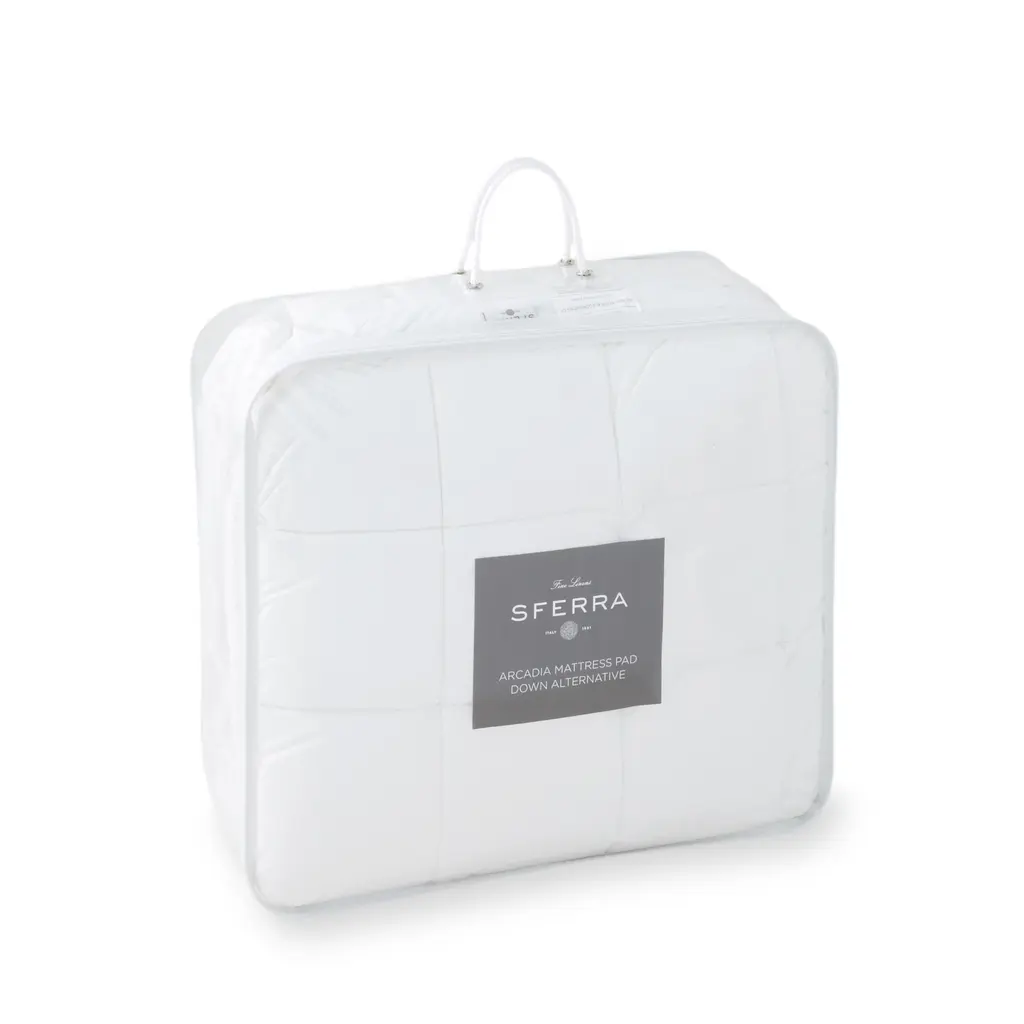 Encased in luxe cotton sateen, these soft and comfortable mattress pads by SFERRA are crafted from Pluma-Fil down alternative. These mattress pads are generously cut to fit up to a 17" deep mattress.
