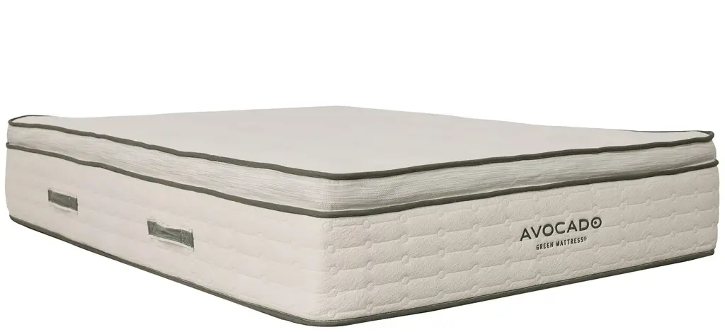 Avocado mattresses feature their distinctive, needle-tufted rosettes made from soft, white organic wool - a hallmark of high quality. A best-in-class innerspring unit ensures superior ergonomic support and durability, featuring steel coils individually encased in fabric pockets and arranged in multiple gauges and seven distinct zones. In addition, Avocado uses certified organic materials processes with stringent product testing for trust and transparency.