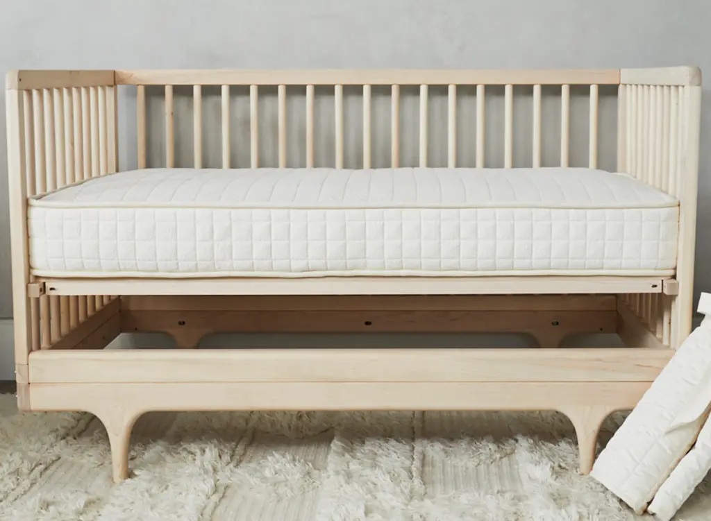 Avocado sets out to make the best GOTS-certified organic crib mattress on the market, regardless of price. The result is worthy of praise: Introducing the dual-sided Avocado Luxury Organic Crib Mattress, a hybrid design and the ultimate expression of healthy organic principles, sustainable design, and time-honored bed-making craftsmanship. It is lovingly handcrafted in Los Angeles with only the finest organic materials and certified components available: cotton-wrapped innersprings encased in unbleached cotton, which are top-and-bottom tied and nested and hand-sewn without glues, plus certified organic wool; organic certified hemp pads; organic certified coco-fiber perimeters infused with organic latex for solid edge support; resilient organic certified latex foam; and the finest quality, organic certified cotton ticking. The result is simply the finest GOTS-certified organic hybrid crib mattress on the market.
