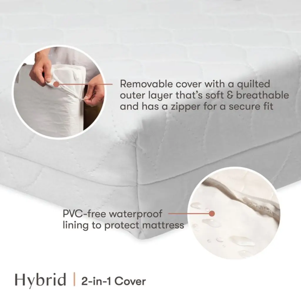 Provide a comfortable sleep environment for your baby with our Babyletto Pure Core Crib Mattress. Combining two covers in onea soft, quilted cotton outer layer and a non-vinyl, waterproof backingthe removable hybrid cover protects the firm, supportive mattress while keeping your baby comfy. The zipper closure and square corner design ensure a seamless sheet fit. The GREENGUARD Gold Certified mattress is hypoallergenic and free of chemical flame retardants, with a lightweight, dual-sided design to meet both infant and toddler needs.