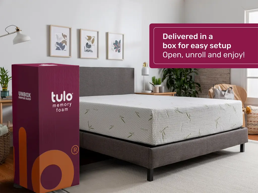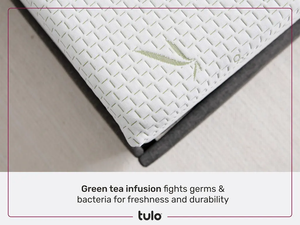 Durable construction, dream-inducing comfort and a unique infusion of naturally clean materials meet in our exclusive Tulo® 12” Memory Foam Bamboo Mattress. Side sleepers will rave about the pressure relieving, cloud-like comfort, and back sleepers will love the slight elevation lift for their legs. And everyone loves how clean this mattress feels. That’s because the hollow-celled bamboo threads in the stretch knit cover allow optimal airflow, while green tea oil in the memory foam fights germs for a longer-lasting, more durable mattress. Plus, the layer of support foam provides a sag-free, firm foundation that keeps your spine aligned.