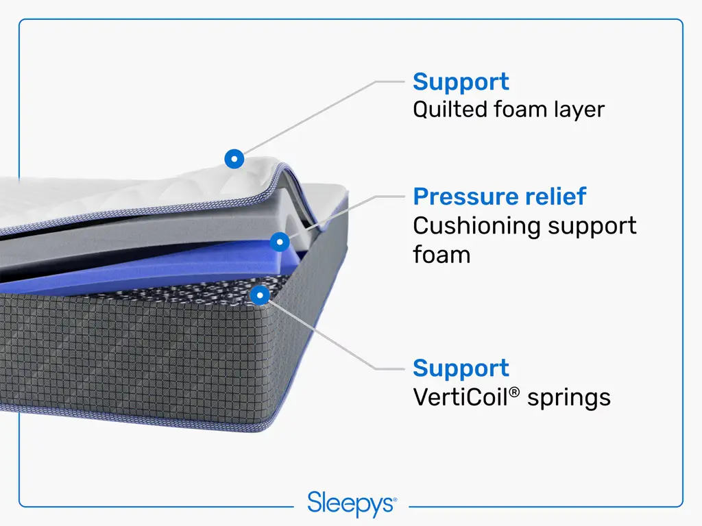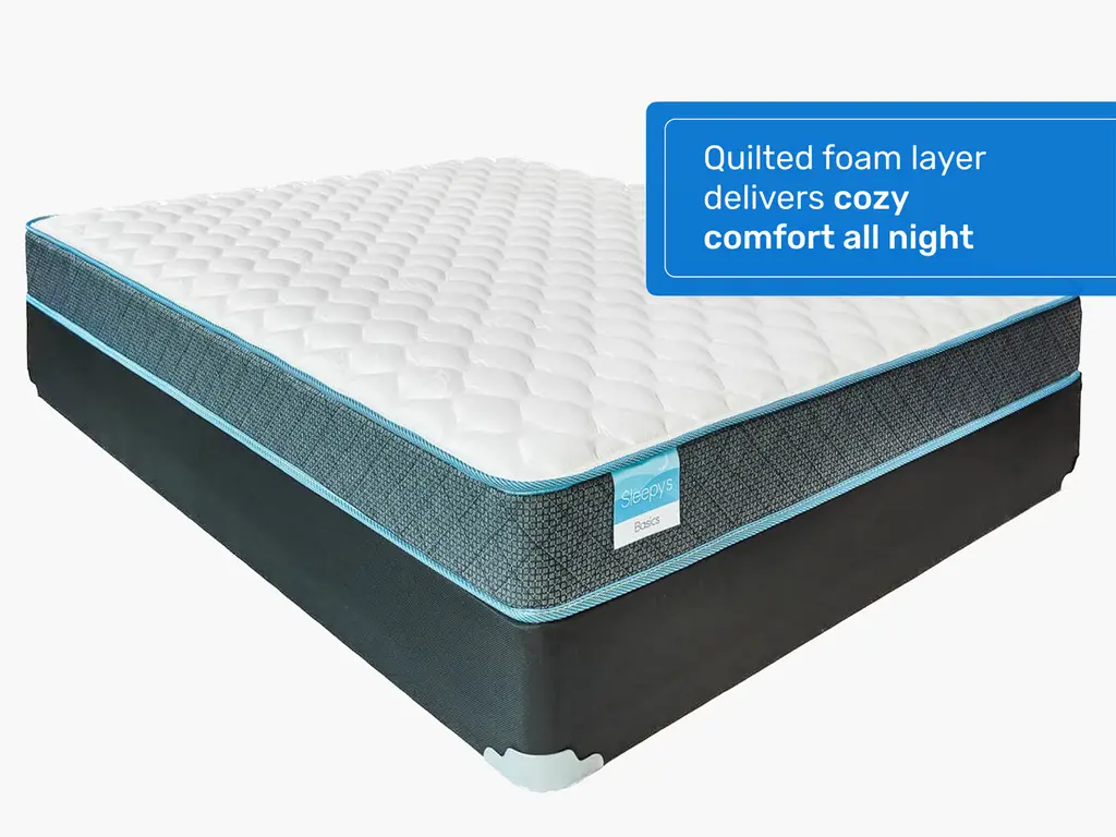 Enjoy the simple pleasure of a great night’s sleep at the perfect price point with the new Sleepy’s® Basic innerspring mattress. The Sleepy’s Basic gives you a durable and consistent sleep surface. More than 440 coils work together to evenly distribute weight and support your entire body throughout the night. Topped with a quilted foam layer, it gives you the comfort your body demands. It’s anything but basic.