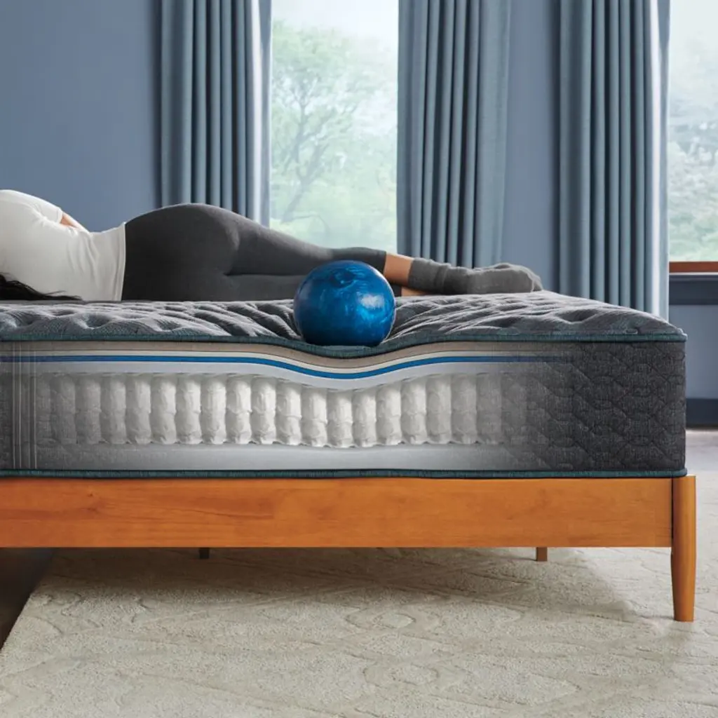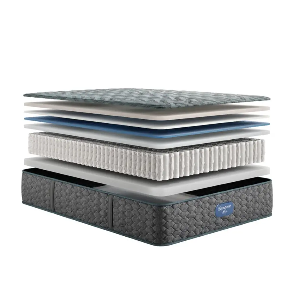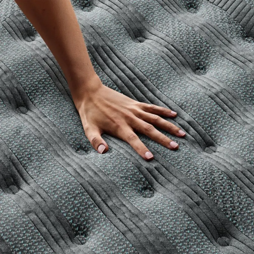 Get truly restful, supported sleep on your back or stomach on this firm mattress from BeautyRest. Active Response memory foam contours to the body to help relieve aches and pains, while SurfaceTouch gel memory foam quilted into the surface of the mattress relieves pressure. BeautyRest's pocketed-coil construction provides individual support for each sleeper and isolates motion so you both sleep undisturbed. The ingenious InfiniCool sleep surface stays cool-to-the-touch for a soothing, serene rest.